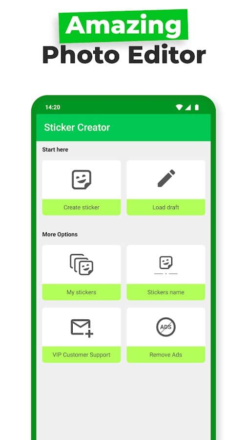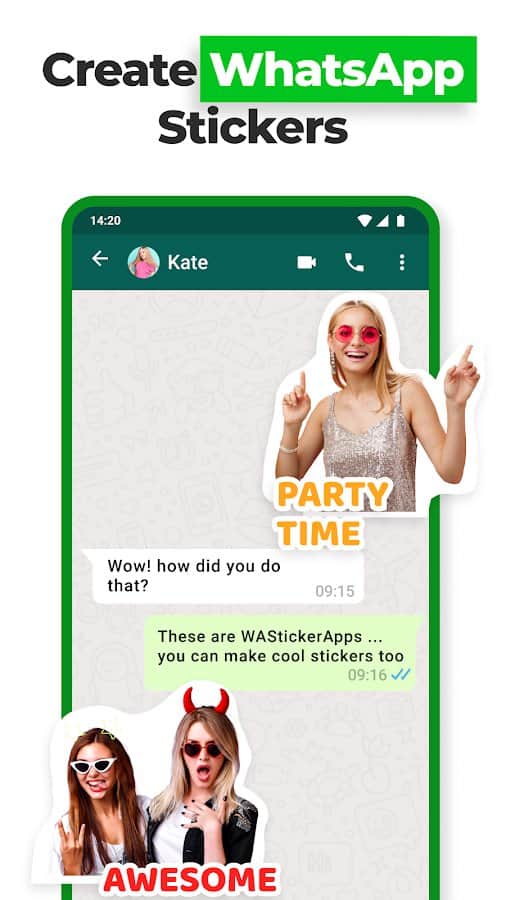 Crear pegatinas: WAStickers - Si no tienes suficientes paquetes de pegatinas adecuadas para usar en la aplicación de Whatsapp, entonces tienes la oportunidad de crear tus propias pegatinas a partir de cualquier imagen, incluso una foto personal. Simplemente carga la imagen necesaria en esta aplicación, si es necesario, recorta, corta el fondo, escribe algún texto y pega pegatinas divertidas o emoticonos, colocándolos en un lugar conveniente. Además del cuadrado estándar, puedes elegir un patrón de corazón, círculo, estrella, flecha y triángulo para que ninguno de los contenidos sobrepase sus bordes.