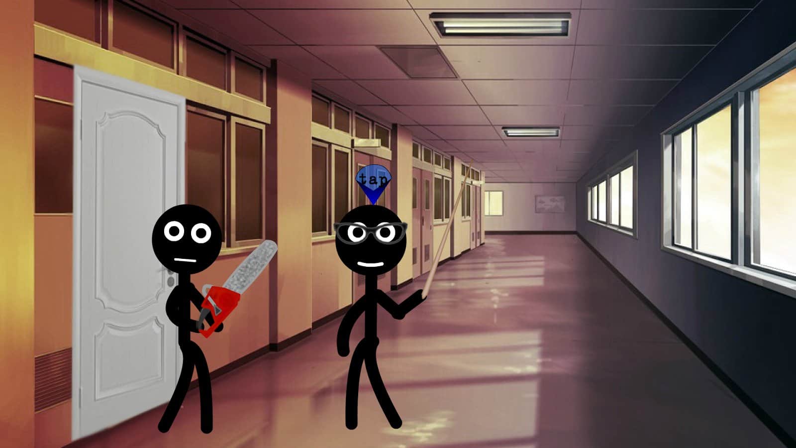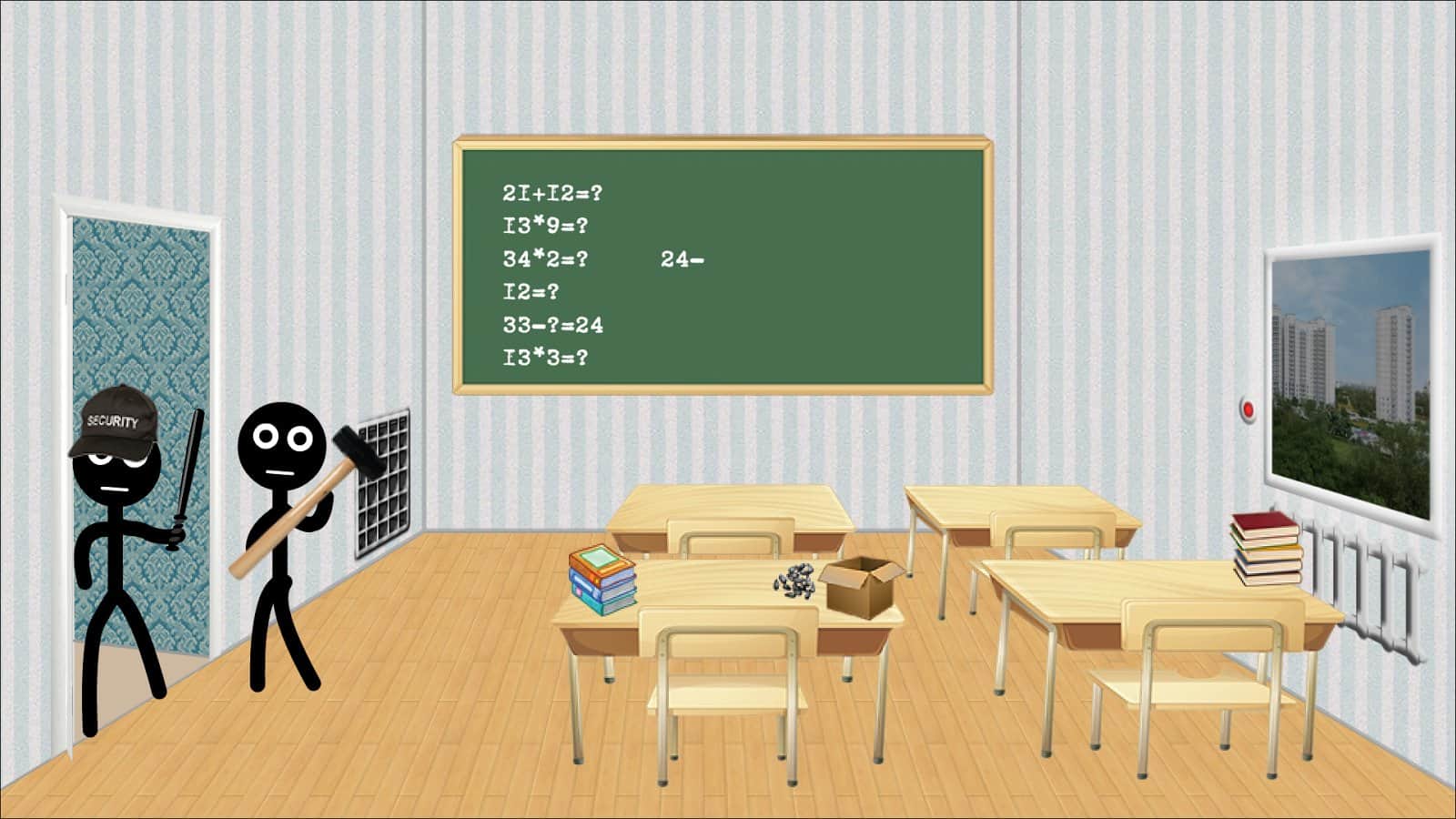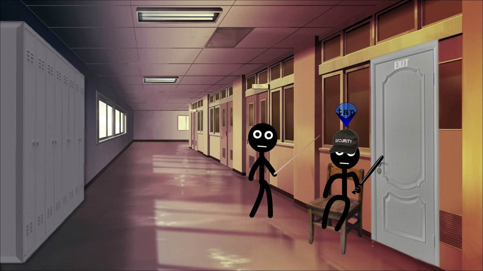 Stickman college – un juego en Android donde ayudarás a un Stickman a salir del Colegio. En este juego, tu tarea será usar varios objetos para intentar salir de las paredes del Colegio y burlar a un guardia vigilante. Usa diferentes objetos en una caja de cartón, y luego utilízalos para la libertad. Muévete a través de diferentes habitaciones y pasillos de la institución y usa bombas, sierras, cuerdas y teléfonos. Ten cuidado con los enemigos que cazarán tu equipo, y no olvides que en la calle te esperarán una variedad de peligros.