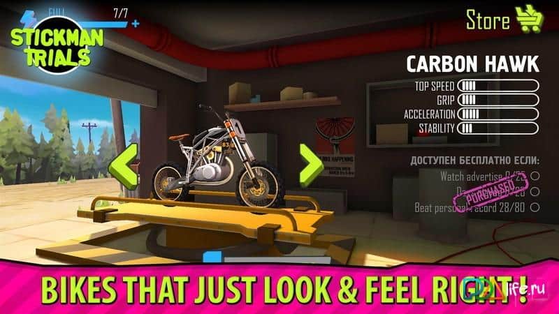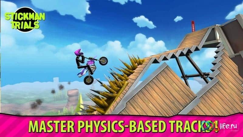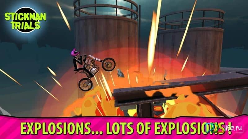 Stickman Trials – bicicletas de carreras de calidad y bicicletas para diferentes terrenos. En las pendientes hay muchos obstáculos peligrosos que deben superarse con extrema precaución. No siempre es posible recorrer la pista como se espera en el primer intento, después de algunas prácticas seguramente tendrás éxito. El juego tiene una gran selección de vehículos de dos ruedas, que van desde bicicletas hasta potentes motos deportivas haciendo acrobacias. En el juego hay un modo multijugador para establecer récords y superar el antiguo. Colócate en el pedestal en la tabla de clasificación.