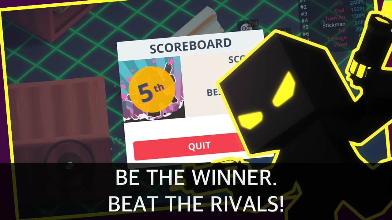 Stickman.io: la pelea en el almacén - un píxel ciberpunk - un brillante juego de neón para Android donde controlas un personaje que se mueve a través de diferentes mundos y lucha contra enemigos. Este juego te lleva a un futuro distante, donde participarás en batallas dinámicas en diferentes mapas. Tu tarea principal en este juego es sobrevivir. Muévete por la arena tan rápido como puedas y busca refugio del fuego enemigo. Lucha con armas fantásticas y trata de aumentar tu puntuación en este juego. Juega con tus amigos y obtén recompensas durante el juego.