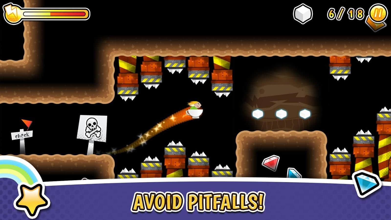 Storm in a Teacup - colorido plataformas de arcade hecho en un estilo bidimensional. El personaje principal de este juego es un niño divertido que viaja a un mundo ficticio en un tazón de té, mientras que en los clásicos del género debes evitar obstáculos y diferentes enemigos, así como durante el viaje resolver acertijos. Los desarrolladores han logrado combinar de manera bastante armoniosa los elementos de juego de arcade hardcore y acertijos lógicos.