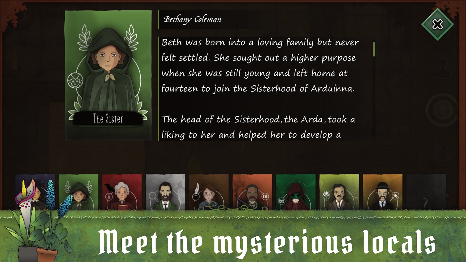 Extraña Horticultura - un rompecabezas místico donde el misticismo y el surrealismo se entrelazan en cada tallo y hoja. Tu asistente gato, llamado Sabretooth, siempre estará a tu lado, animándote y trayendo suerte. Pero ten cuidado, porque no es solo un gato ordinario, tiene habilidades mágicas y puede ser un aliado peligroso o un enemigo vengativo. Al unirte a la secta, podrás descubrir aún más secretos de Andermir y averiguar qué hay detrás de sus bosques místicos y montañas impenetrables. Pero no olvides que cada acción que tomes afecta la trama y puede llevar a consecuencias impredecibles. Tu creciente colección de plantas misteriosas determinará tu destino y abrirá nuevas posibilidades o conducirá a eventos oscuros.