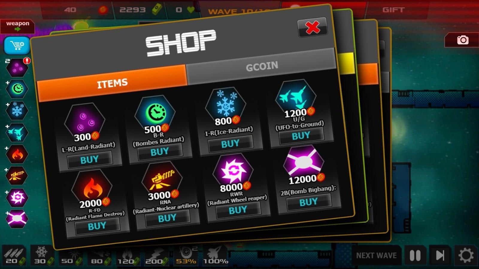 Estrategia - juego de estrategia de defensa de galaxia brillante para Android, donde defenderás tu base de los enemigos. En este juego, tus enemigos te atacarán desde todos los lados y para ganar en este juego tendrás que planificar cuidadosamente tus tácticas y elegir la torre adecuada para la defensa. En este juego, eres transportado a un planeta distante para derrotar a tus enemigos, debes reunir recursos, comprar y mejorar tus armas y planificar ataques. El juego cuenta con tres modos de juego: normal, difícil y muy difícil. Usa armas poderosas y destructivas que matan al enemigo, los paralizan, los hacen volar por los aires y los borran de la faz de la tierra.