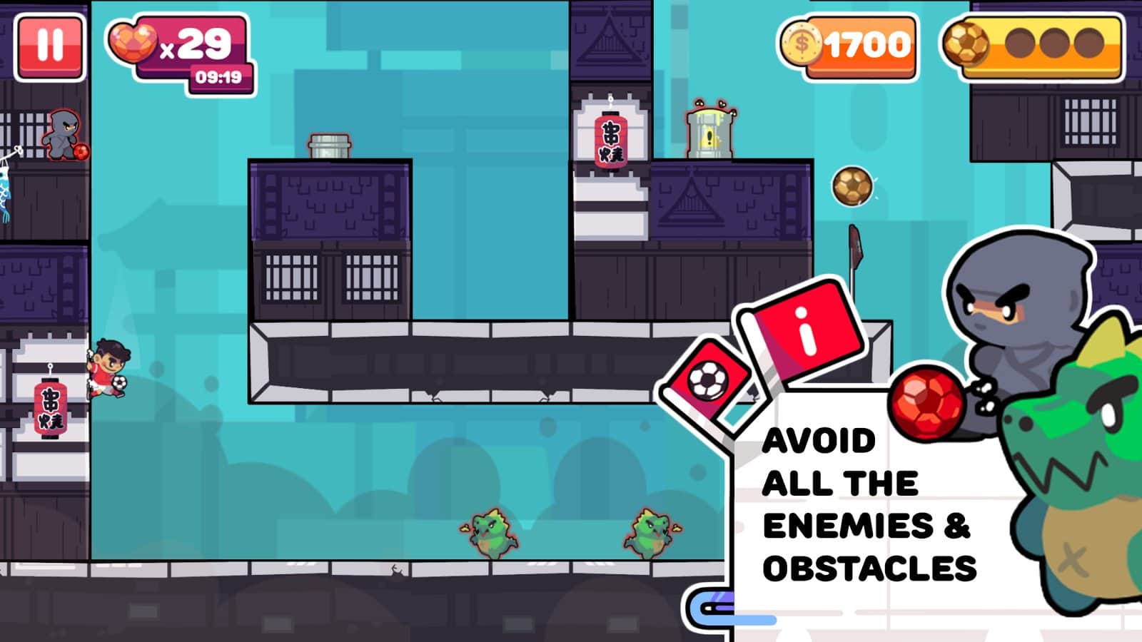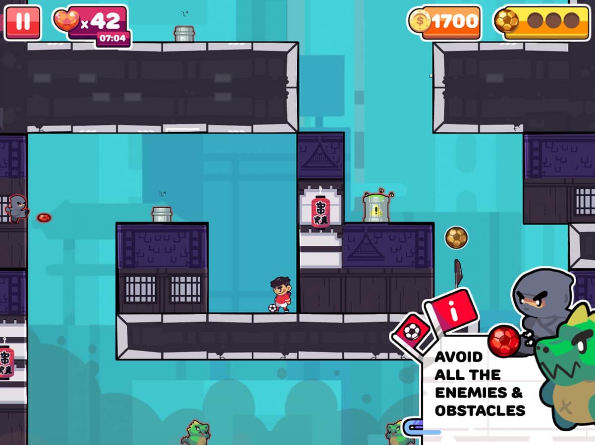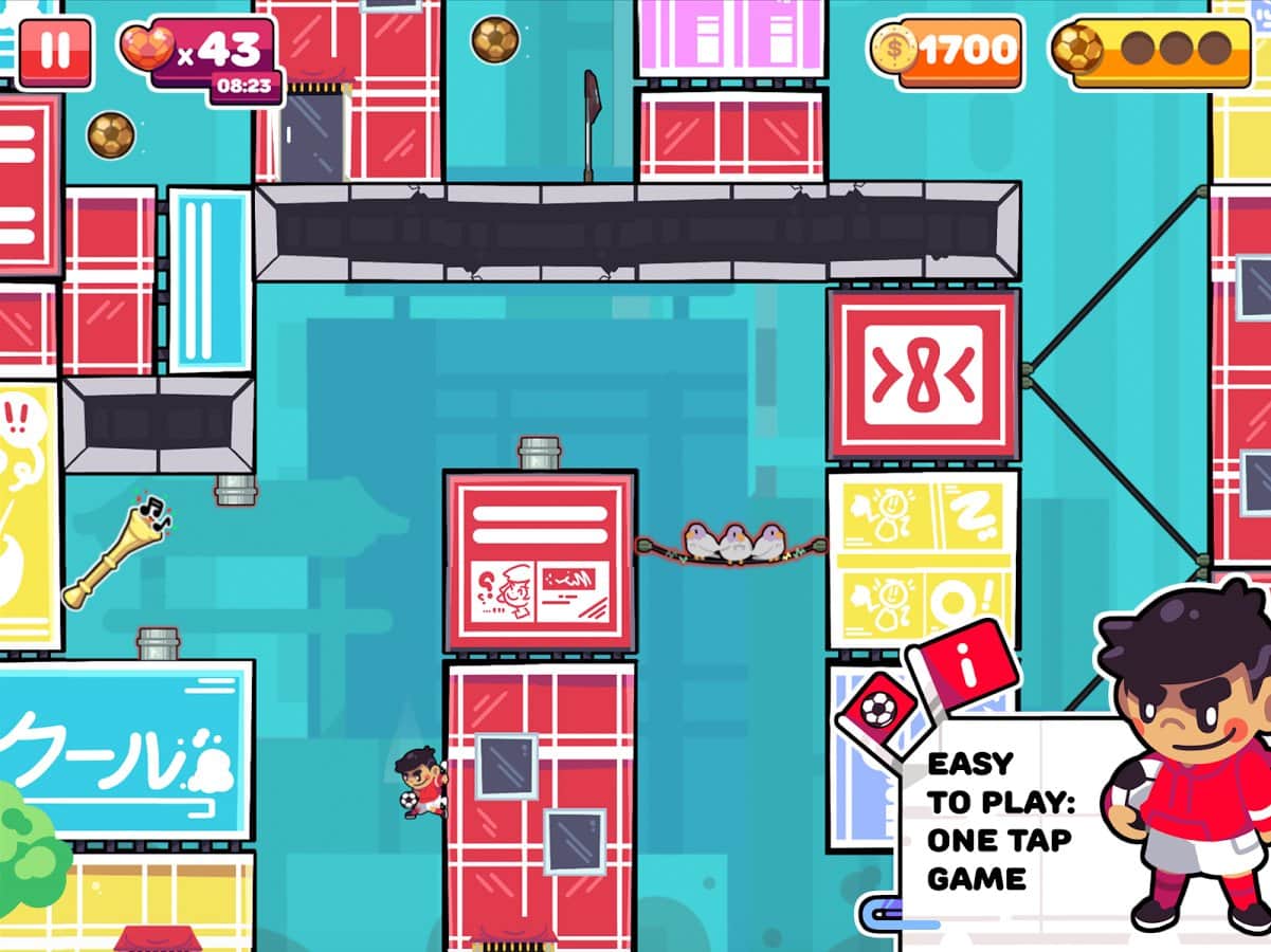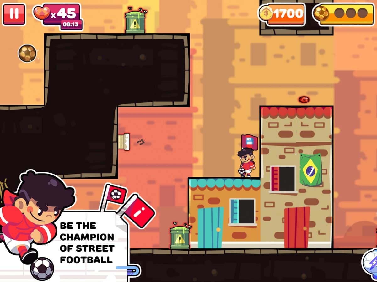Street League – un plataforma para Android donde ayudarás al futbolista a marcar un gol. En este juego controlas a un jugador de fútbol con un solo toque de dedo en la pantalla y lo obligas a correr, saltar y evitar a muchos enemigos que se interponen en tu camino. Demuestra a todos que eres el mejor jugador y que la multitud de enemigos y obstáculos no te detendrá. Realiza varios trucos y logros y obtén valiosos trofeos. Juega con jugadores de todo el mundo en modo multijugador y muestra el mejor tiempo, lo que tu héroe puede hacer y marca un gol en la portería del oponente.