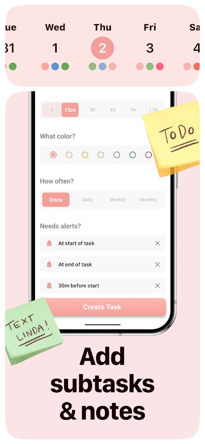 División de tareas en subtareas: Agrega subtareas y notas para manejar incluso los proyectos más grandes.