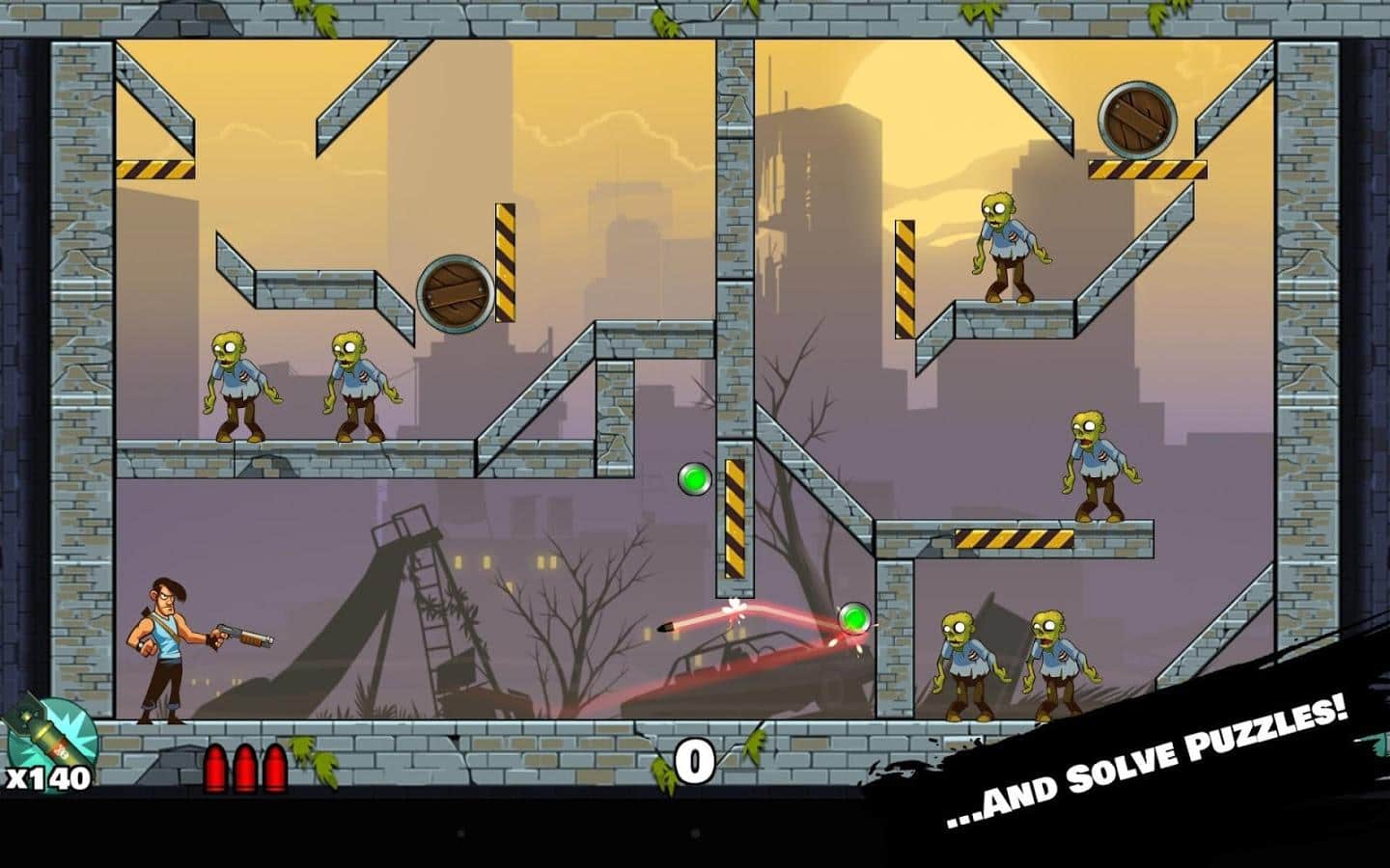 ¡Zombis Estúpidos - lucha contra zombis estúpidos! ¿Por qué un zombi es estúpido? Sí, es simple, ¡se quedan ahí mirando mientras intentas atraparlos! Y sí, intentándolo, porque no es tan simple, si al principio es bastante fácil, con cada nuevo nivel se esconden mejor y mejor. Pero no te preocupes, tus balas rebotan en cualquier superficie, así que podrás atraparlos si eres muy preciso. El juego es bastante simple y sería genial para pasar el tiempo.