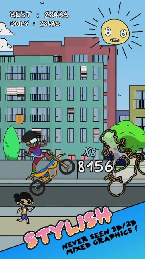 Wheelie de Verano – toma el control de un motociclista que conduce su moto por las calles de la ciudad, equilibrándose en la rueda trasera. En este juego tienes que mostrar toda su destreza y excelente reacción, tocando la pantalla en el momento adecuado y sin dejar que se caiga, ayudando al piloto a avanzar. El personaje principal avanzará automáticamente y realizará trucos. Intenta superar la mayor distancia posible y no caerte en el camino. Sube lo más alto posible en la tabla de clasificación recogiendo puntos y utilizando potenciadores.