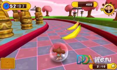 Super Monkey Ball 2: Edición Sakura - juego de arcade adictivo para Windows Phone. Elige uno de 4 héroes, siéntate en la bola y corre en busca de plátanos. El control en el juego se realiza utilizando el giroscopio.
