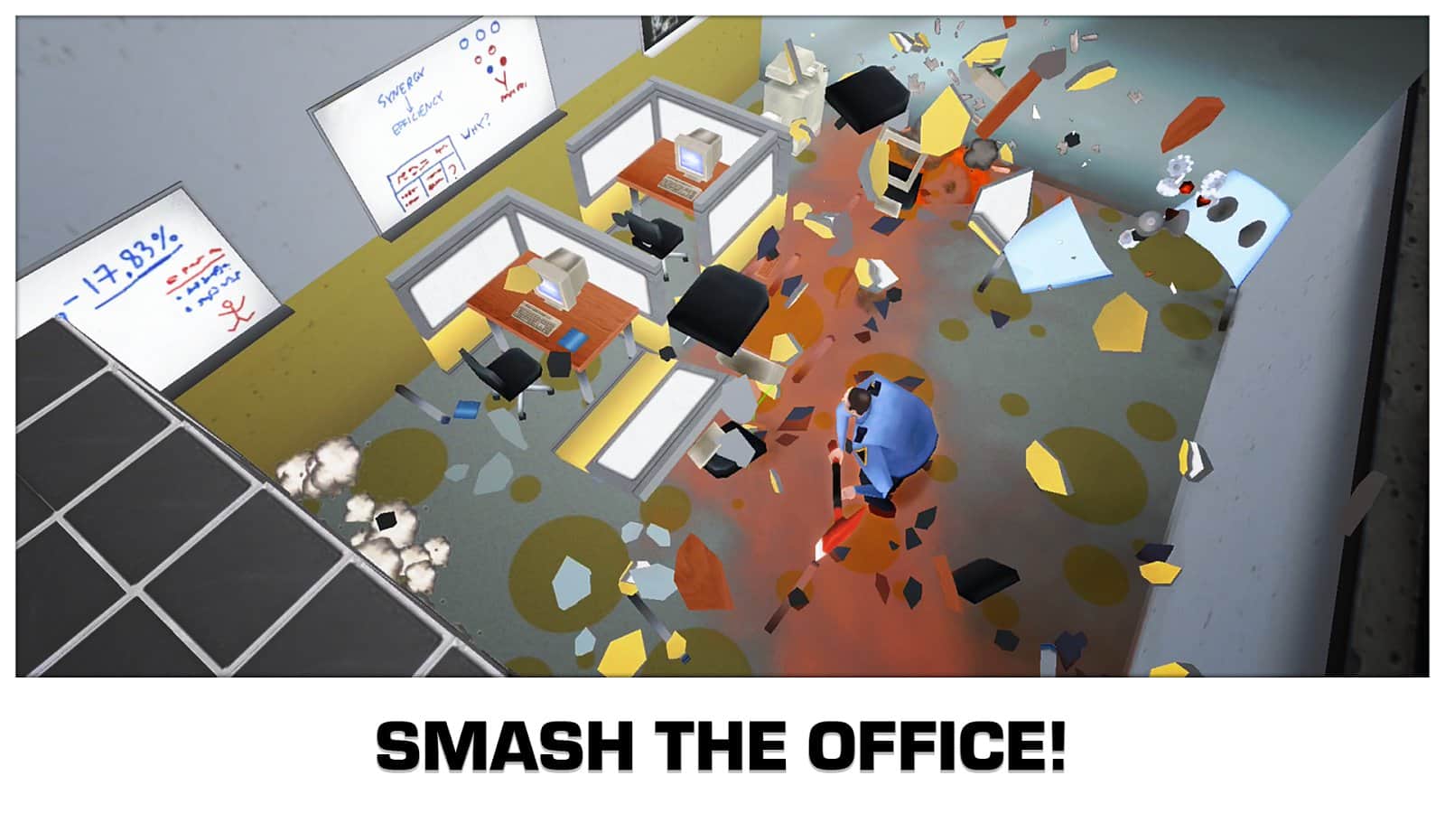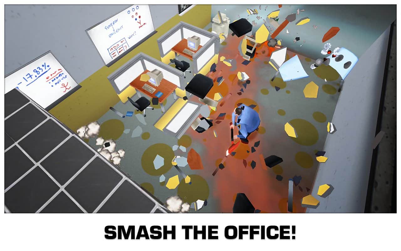 Super Smash la Oficina - ¿Tienes un mal humor? ¿Todo lo que tenemos en el trabajo? Ahora esto no es un problema, envía tu oficina al infierno. Creo que tienes un talento para la destrucción. Este juego te dará una respuesta decente, porque para destruir todo en su camino no solo necesitas hacerlo correctamente, sino también rápidamente, detrás de ti te empujará la pared, y si no tienes tiempo para romper todo en la habitación, ¡perderás! Además, hay diferentes personajes, así que podrás elegir a alguien de su profesión, ya sea un vigilante o un trabajador de oficina con su chaqueta. Adelante, aplasta y destruye todo a su paso.
