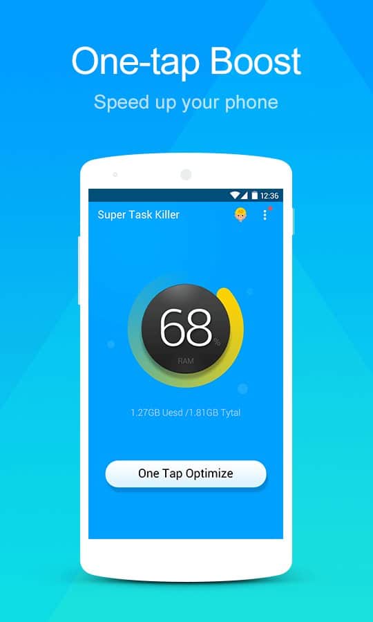 Super Task Killer es una de las herramientas más básicas y funcionales para la finalización rápida de tareas. La aplicación ocupa casi ninguna memoria adicional en tu teléfono y su tamaño no excede los 2 megabytes. El programa consume una cantidad mínima de energía, pero también ayuda a ahorrar. Al completar una tarea innecesaria, reduces la carga en la memoria y el procesador, lo que hace que el teléfono consuma menos energía y prolonga la vida de la batería. La aplicación tiene una interfaz fácil de usar, que es difícil de confundir. Presenta un widget funcional que ayuda a eliminar la tarea con un solo toque.