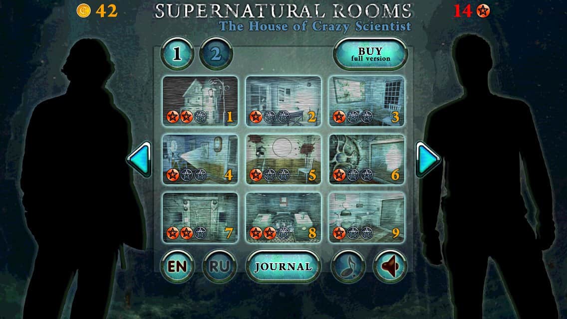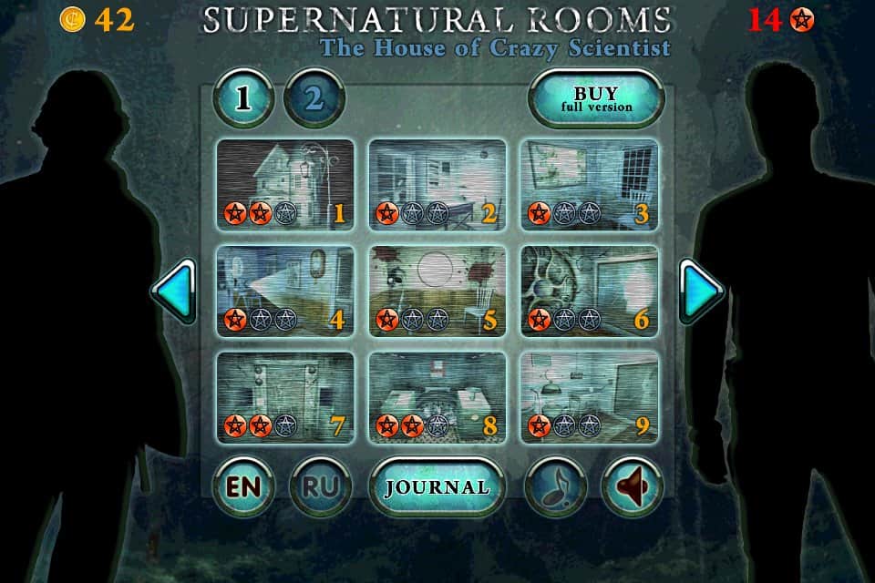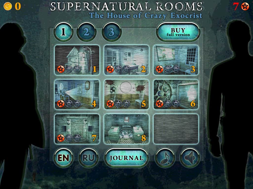 Habitaciones Sobrenaturales - Dos expertos en fenómenos inexplicables se habían visto involucrados en una aventura peligrosa. En este momento deben investigar y neutralizar la casa del loco fallecido Profesor que realizó experimentos en personas y no solo. Pero necesitan ayuda. ¿Espero que no tengas miedo de los fantasmas, de los fantasmas y demonios? ¿Te atraen los terribles misterios y la aventura mística? Entonces eres adecuado para el trabajo. Para pistas tendrás 9 niveles.