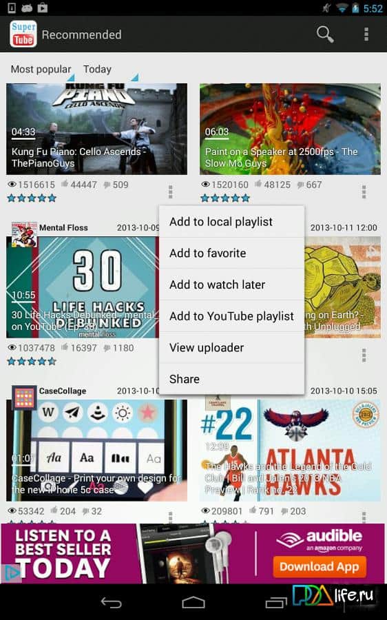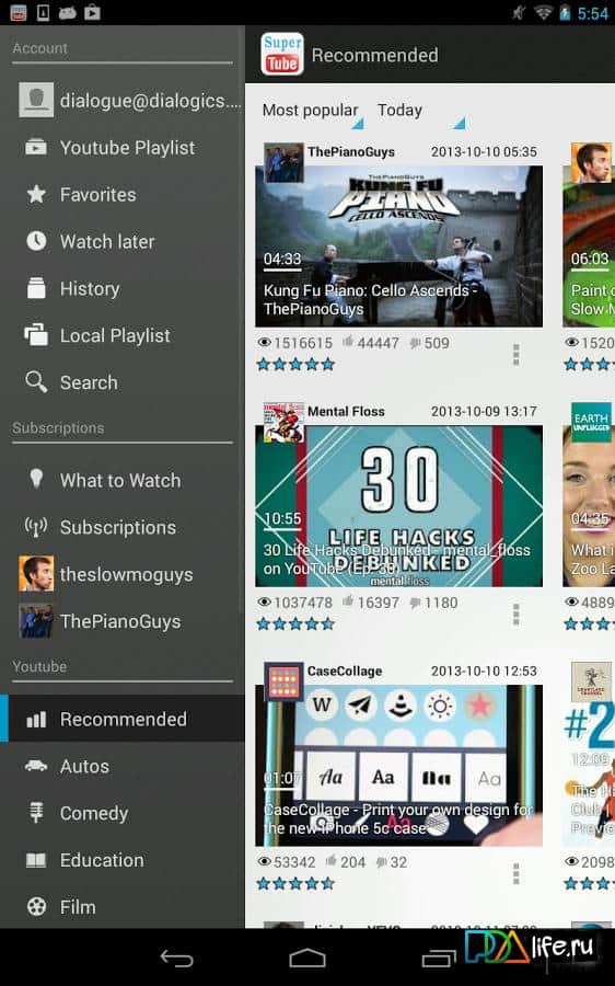SuperTube - un reproductor conveniente para Android para ver tus videos favoritos. El programa tiene una interfaz simple y despejada que incluso un principiante entenderá. La funcionalidad también es excelente además de las funciones estándar como rebobinar, pausar y otras, hay otras características útiles que serán una agradable adición al usar la aplicación.