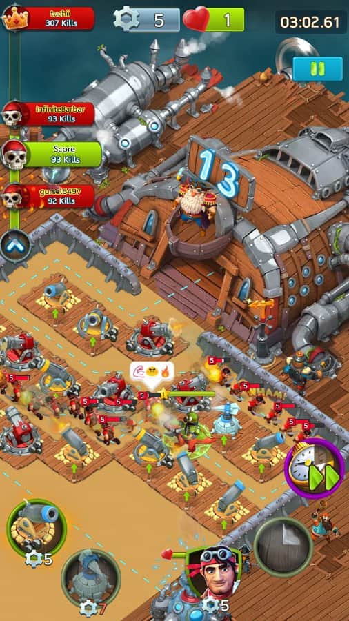 Survival Arena – estrategia para Android, que te lleva a una legendaria arena flotante, que pertenece al capitán pirata. En este juego, tu tarea es construir torres y colocarlas en los lugares adecuados para atacar al oponente. Repela los ataques enemigos y gana batallas difíciles que te traerán grandes recompensas. Desarrolla una estrategia de combate y lucha con todas tus armas y torres. Navega a través de una variedad de arenas y participa en el rápido torneo celebrado entre jugadores de todo el mundo. Juega este juego y conviértete en el mejor estratega.
