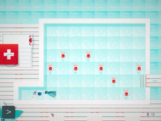 Swim Out – gran juego de rompecabezas para IOS en el que vas a nadar en la piscina. En este juego jugarás el papel de un nadador, que superará todos los obstáculos y llegará a la salida paralela. Calcula cuidadosamente cada movimiento y trata de completar el nivel en menos movimientos. Completa los 100 niveles del juego, durante los cuales te encontrarás con 12 especies de nadadores que tienen diferentes elementos para nadar. Evita medusas, cangrejos y olas. Juega este juego y diviértete con grandes gráficos.