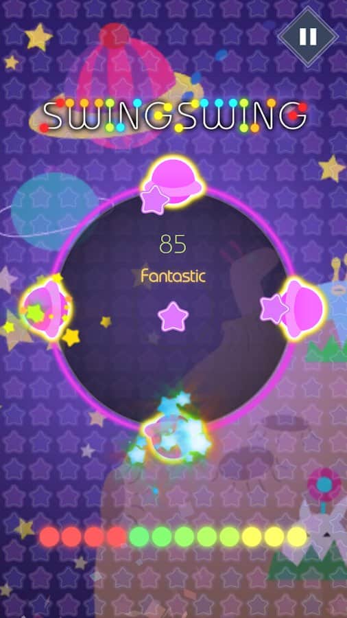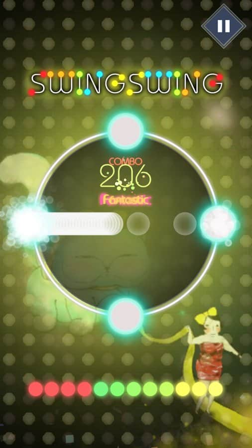 SwingSwing: Juego de Música – un juego en Android, con muchas capas. En este juego, tu tarea principal será tocar la pantalla de tu teléfono o tableta en el momento adecuado y moverte al ritmo de la música. Este juego es perfecto tanto para principiantes como para jugadores experimentados que tienen un alto nivel de entrenamiento. Con cada nueva canción seleccionada, cambiará el estilo de juego. En el juego encontrarás 16 canciones diferentes y tres niveles de dificultad. Elige un nivel de dificultad que se ajuste a tu estilo de juego y disfruta de una jugabilidad dinámica. Gana más puntos en modo fiebre.