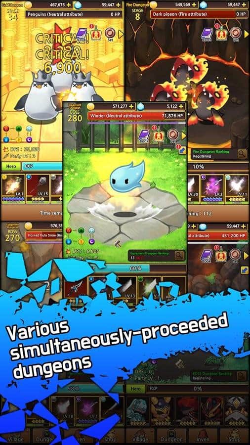 Caballeros de la Espada: RPG inactivo – juego de rol en Android donde limpiarás la mazmorras de monstruos. En este juego, irás en un emocionante viaje a través de numerosas mazmorras, donde te esperarán una variedad de monstruos con los que tendrás que luchar. Supera todas las pruebas del juego y obtén equipo y armas para tu héroe. Si recolectas todos los materiales que necesitas, podrás conseguir equipo y armas legendarias. Descubre más de 200 tipos de espadas y evalúa su poder.