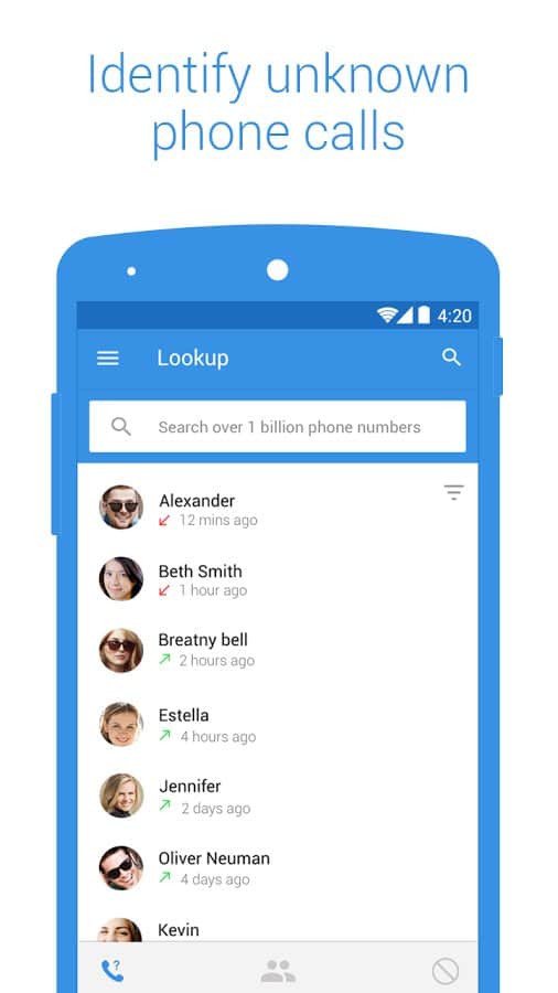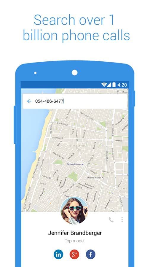 Esta aplicación proporciona al usuario una funcionalidad bastante no estándar que te ayudará a identificar llamadas de números desconocidos, bloquear llamadas no deseadas que ayudarán a combatir el spam, pero se ve mucho más interesante sincronizar tu agenda telefónica con los contactos en redes sociales. La aplicación admite Facebook, LinkedIn y Vkontakte. Desde allí, el programa recopila información sobre números de teléfono y cumpleaños de tus amigos, y el programa conocerá la fecha deseada, pero a tiempo te notificará y te ofrecerá opciones para tarjetas de felicitación.