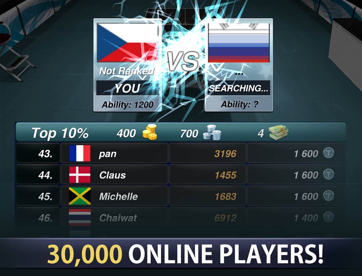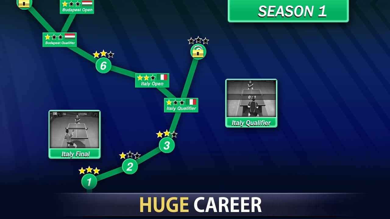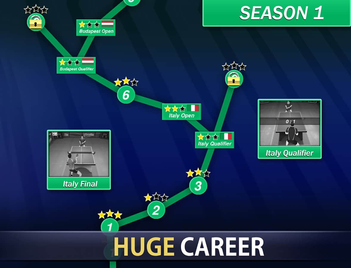 Campeón de Tenis de Mesa – participa en el torneo internacional de tenis de mesa, en este juego para android. Elige un tenista de diferentes países y hazlo único, eligiendo su género, apariencia y uniforme deportivo. Juega varios mini-juegos, entrenando así a tu tenista antes del torneo. Desafía a los mejores jugadores en este juego y controla a tu tenista con un solo dedo. Ascende en la carrera ganando partidos amistosos, mejorando así las estadísticas y parámetros de tu héroe. Adquiere nuevo equipo para tenis de mesa y gana el torneo principal del año, completando más de 50 etapas del juego.