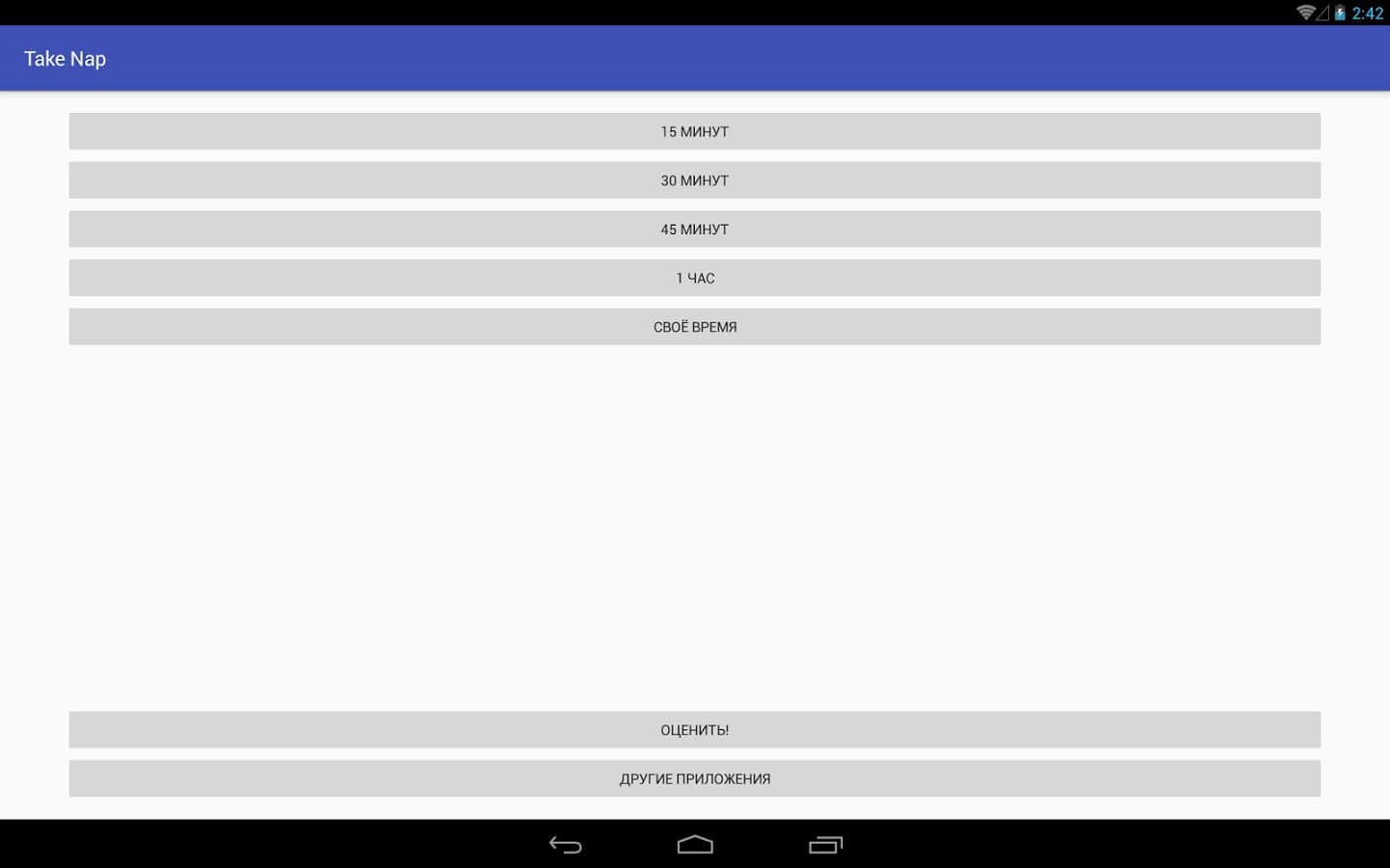 Toma una siesta: SIESTAs - ¿Te gustan las SIESTAs durante el día? ¿Pero tienes miedo de dormir? Esta simple aplicación te ayudará a descansar un poco y no perderte cosas importantes. Este tipo de reloj despertador, pero a diferencia de los modernos, es muy simple. Solo necesitas preguntar la hora o elegir entre opciones predefinidas. No hay nada superfluo, ni siquiera anuncios y nada que falte. Pero debido a que es solo un reloj, ocupa muy poco espacio y apenas consume recursos de tu smartphone. Así que al elegir un reloj despertador simple, esta aplicación será la opción perfecta.