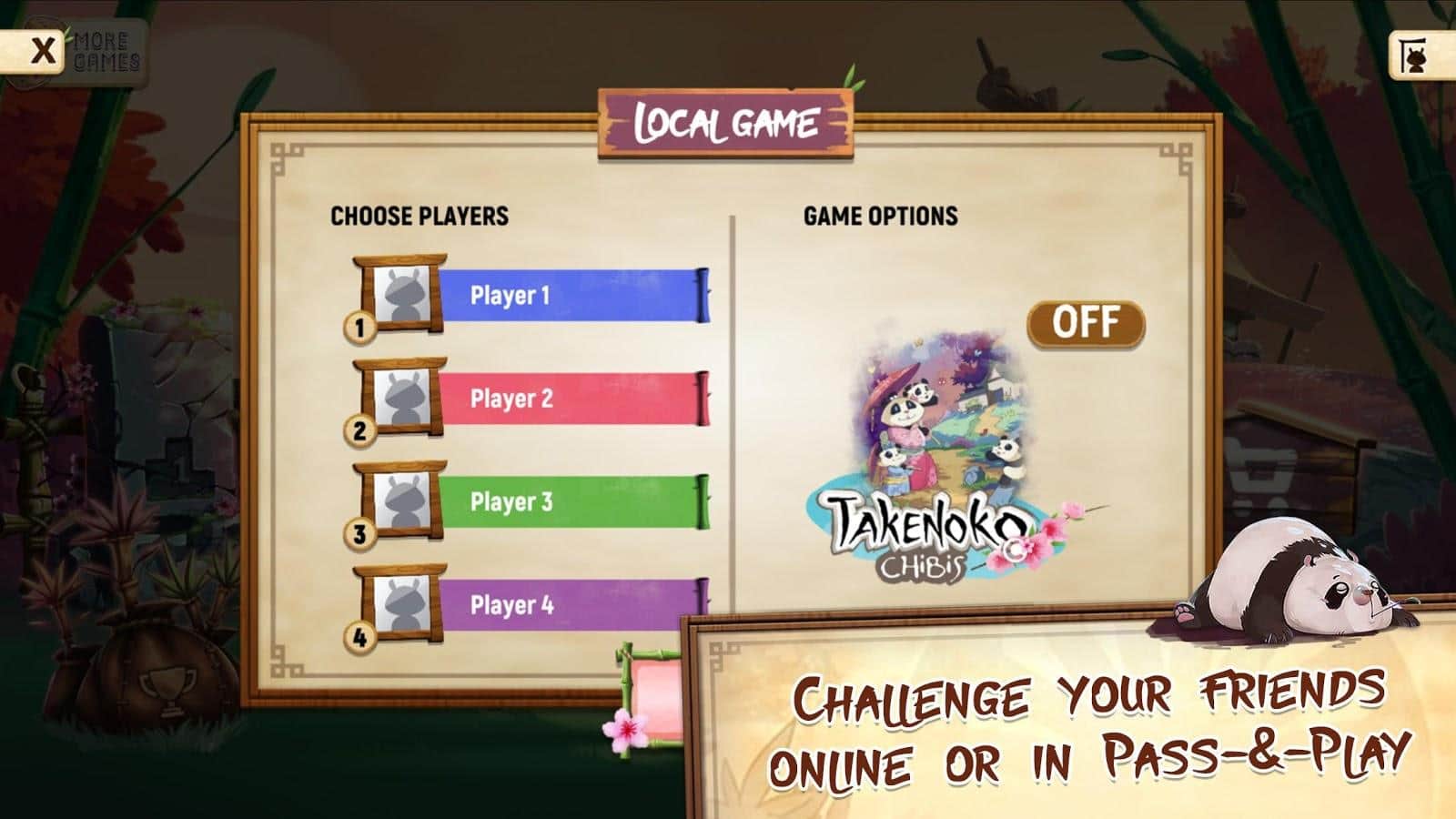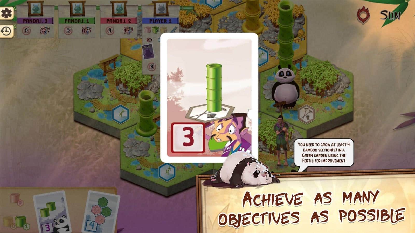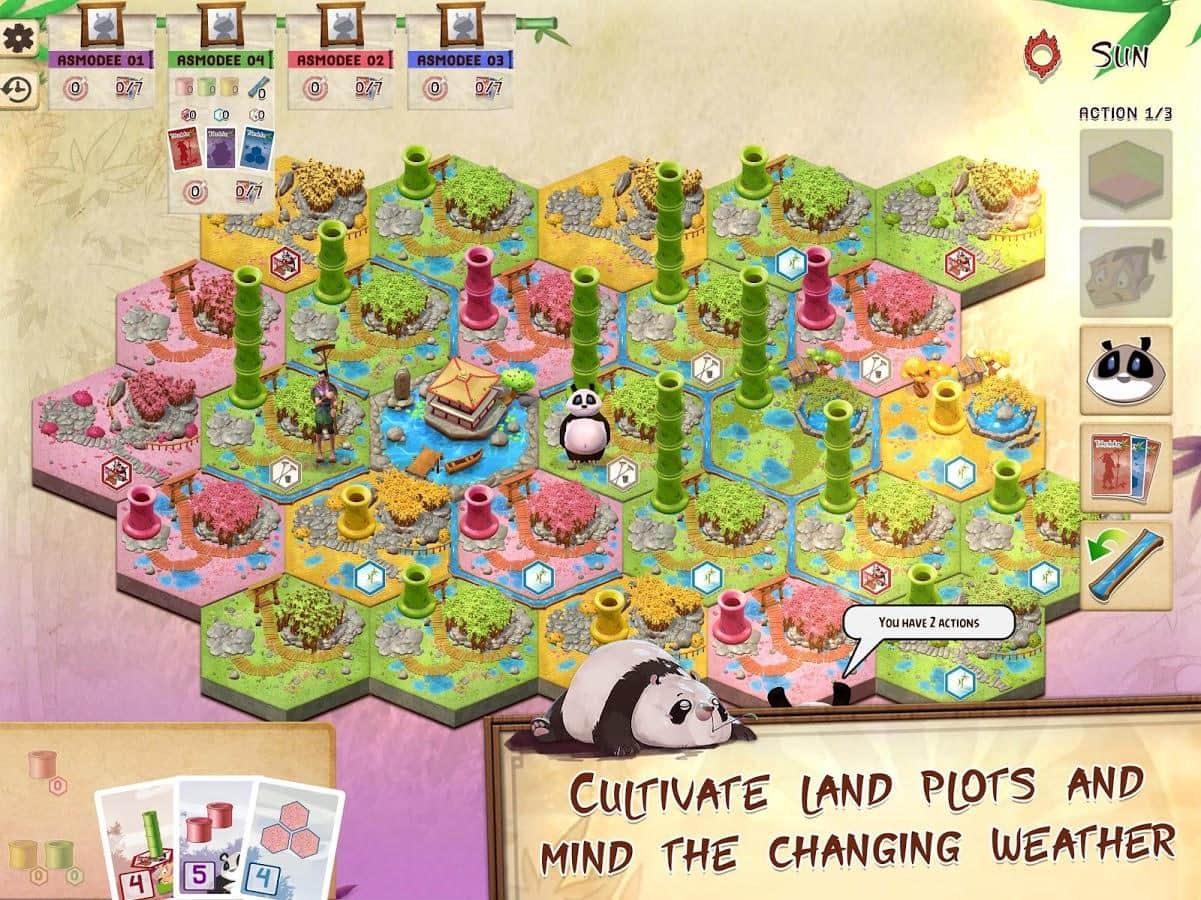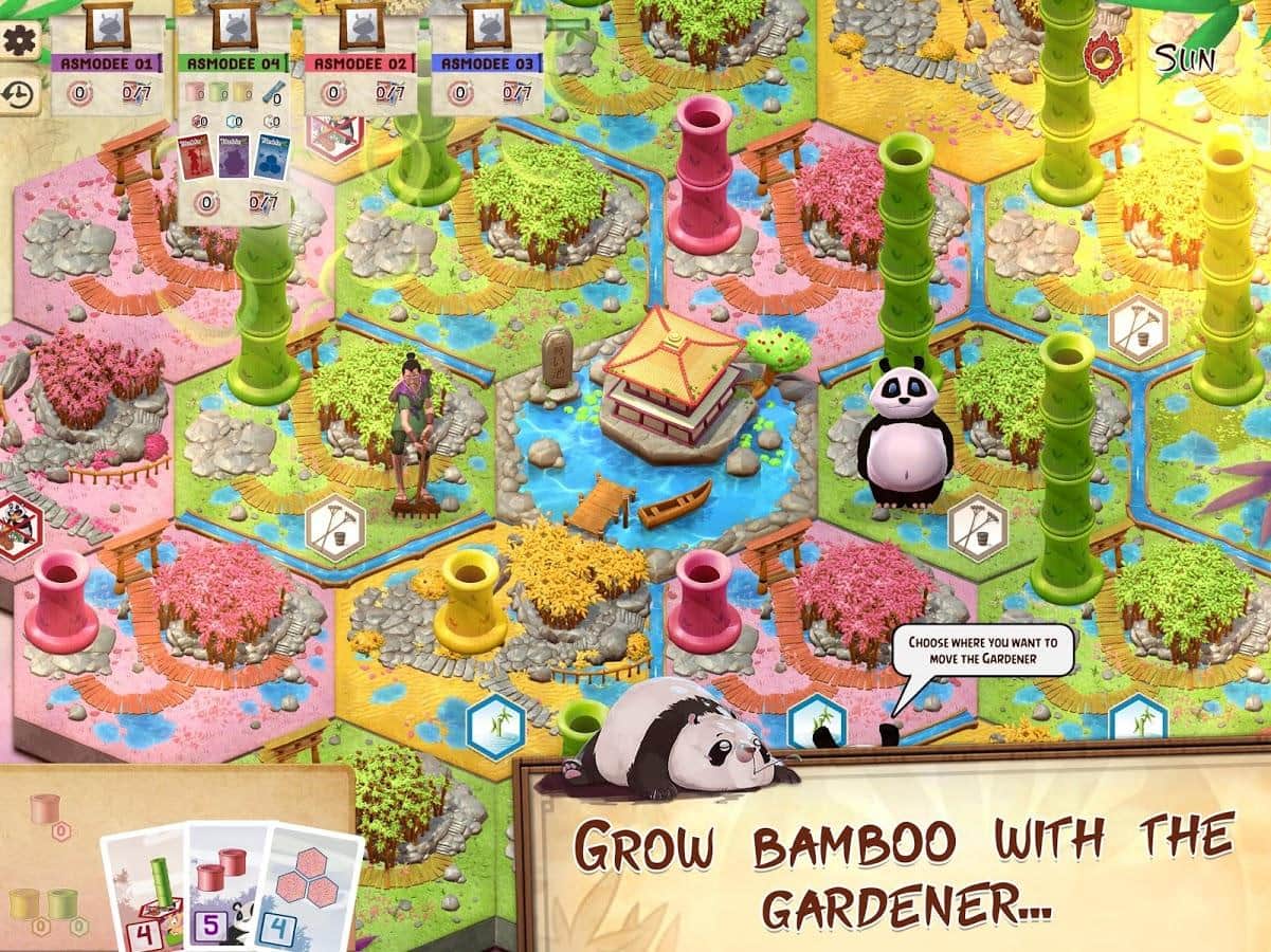 Jugabilidad simple y táctica, adaptada del famoso juego de mesa Takenoko de Antoine Bauza.