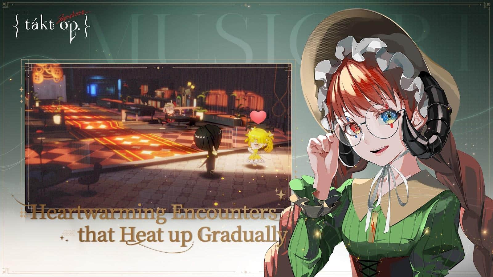 takt op. Symphony es un único juego de rol sinfónico móvil que trae de vuelta al mundo la armonía y el sonido inolvidable de la música. Ella era una gran lámpara, iluminando los caminos y corazones de las personas. La disonancia, encarnada en un meteorito, cayó del cielo y trajo consigo monstruos con un odio hacia la música. Estas criaturas, que se llaman a sí mismas "D2", comenzaron a absorber toda la música a su alrededor, destruyendo no solo los sonidos, sino también a las personas asociadas con ella. Desde entonces, el mundo ha estado privado de música. Sin embargo, gracias al increíble poder de la "Música", la humanidad ha encontrado una nueva esperanza. Las chicas, conocidas como "Mágicas Musicales", fueron dotadas con habilidades únicas de partituras musicales, que se convirtieron en la clave para salvar al mundo.