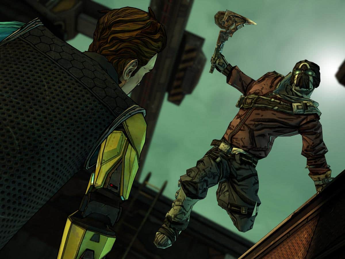 Cuentos de las Tierras Fronterizas - continuación de la famosa aventura de Borderlands 2 con una historia interesante. En este juego tienes que controlar simultáneamente a dos personajes diferentes, Fiona la estafadora y el programador Reese que llegó al planeta Pandora, que sufrió la derrota del apuesto Jack. A medida que avanzas en el juego, verás la realidad de los dos personajes que la realizan de diferentes maneras. Usa varias habilidades, como la hipnosis, y Fiona tiene la capacidad de hackear varios dispositivos electrónicos de Reese.