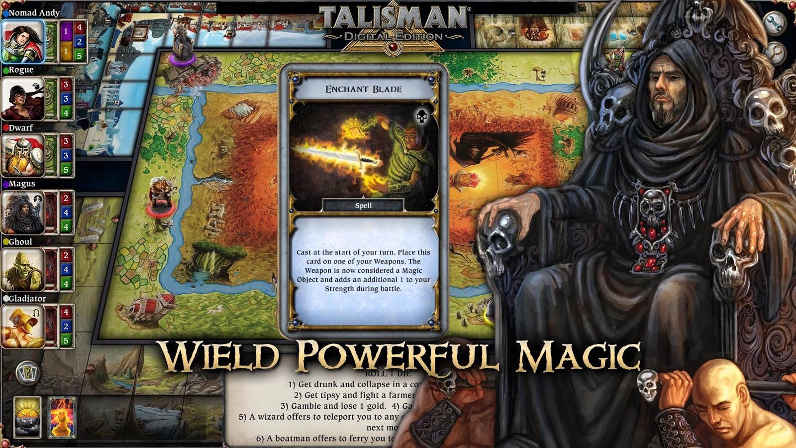 Talisman: Edición Digital - un juego de aventuras de mesa que te sumergirá en un mundo de fantasía. En este juego, emprenderás un peligroso viaje al centro de la Tierra, para encontrar tesoros inimaginables y descubrir la Corona del Comando. Elige un personaje desde guerrero hasta maestro, cada uno tiene sus fortalezas y debilidades, encuentra aliados en la lucha contra los enemigos y comienza tu camino.