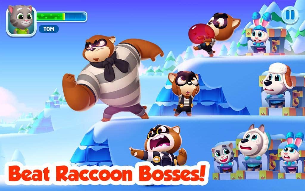 Talking Tom es un personaje digital popular que ha conquistado a los jóvenes jugadores y a sus padres. Como consecuencia, los proyectos de juegos con su participación aparecen con sorprendente regularidad. Y aquí tenemos otro juego de la serie, esta vez tú y Tom, junto a sus amigos, deben luchar contra los astutos mapaches. Los desarrolladores utilizaron mecánicas familiares, los gráficos habituales y una historia simple pero fascinante.