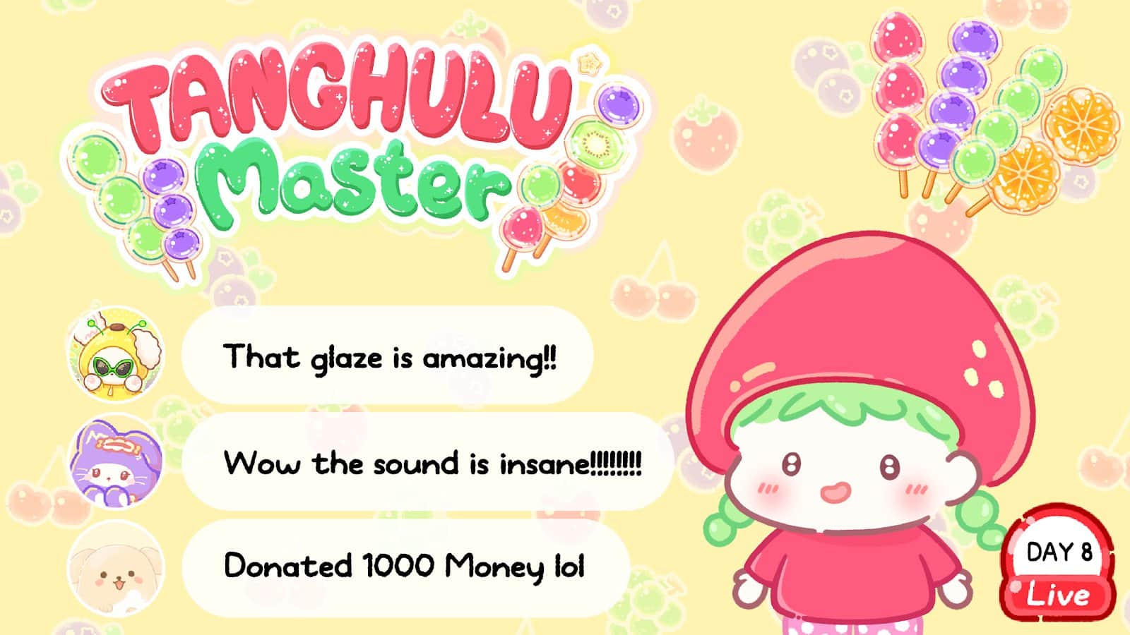 Sumergida en el mundo del mukbang, Lulu decidió transformar la tienda heredada de sus padres abriendo un programa de mukbang que presenta platos de Tanhul. En este programa único, no solo cocina platos, crea arte, cautivando a los espectadores con su energía creativa. Sobrevivir en el mundo del mukbang con frutas ordinarias es un verdadero desafío. Lulu decide ir más allá de lo ordinario experimentando con ingredientes inusuales como gelatina terrenal y pimiento rojo picante. Agitando su tenedor, Lulu enciende su transmisión en vivo. El chat se llena de mensajes y los espectadores evalúan cada plato. Las misiones de los espectadores y el apoyo de patrocinadores traen nuevas oportunidades, permitiendo a Lulu adquirir nuevos ingredientes y dar vida a todas sus fantasías culinarias.