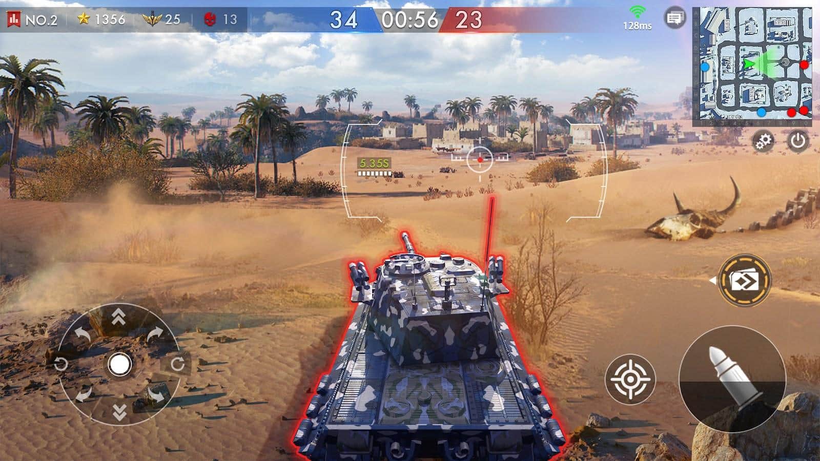 Conflicto de Tanques: PVP Blitz MMO - te encuentras en un campo de batalla, completamente lleno de tanques de varios países: desde aliados hasta enemigos. Jugando como un tanque, debes conducir a través de este campo de batalla y disparar desde tu torreta a cualquiera que encuentres en tu camino de gran guerra. Al derrotar a todos, puedes ganar victoria y dinero. Con este efectivo, puedes comprar un tanque completamente nuevo o varios artículos mejoradores para el viejo. ¡Derrota a todos y defiende el honor de tu país!