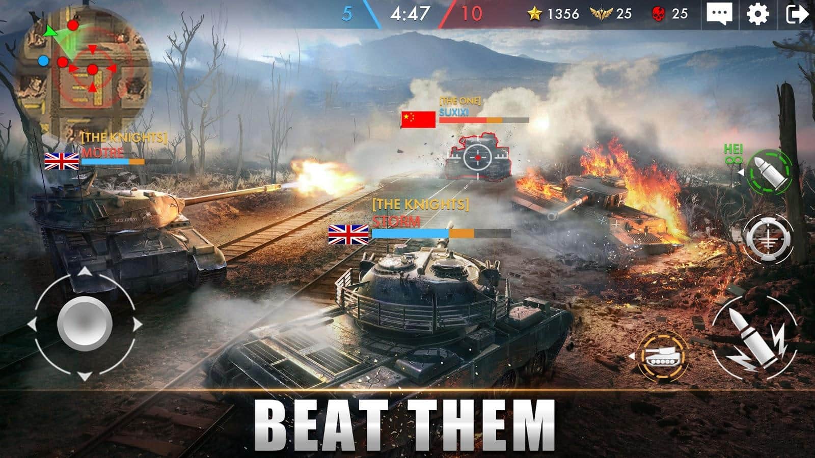 Participa en las batallas más épicas entre campos de disparo de tanques. Destruye tantos tanques enemigos como sea posible y gana experiencia, gracias a la cual podrás mejorar las características de tu tanque o descubrir nuevos tipos de tanques. También puedes añadir varios accesorios a tus tanques que pueden cambiar el resultado de toda la batalla. Emocionantes batallas con personas reales de todo el mundo en varios campos de batalla: campos cubiertos de nieve, zonas industriales e islas deshabitadas con densa vegetación: la elección es tuya.