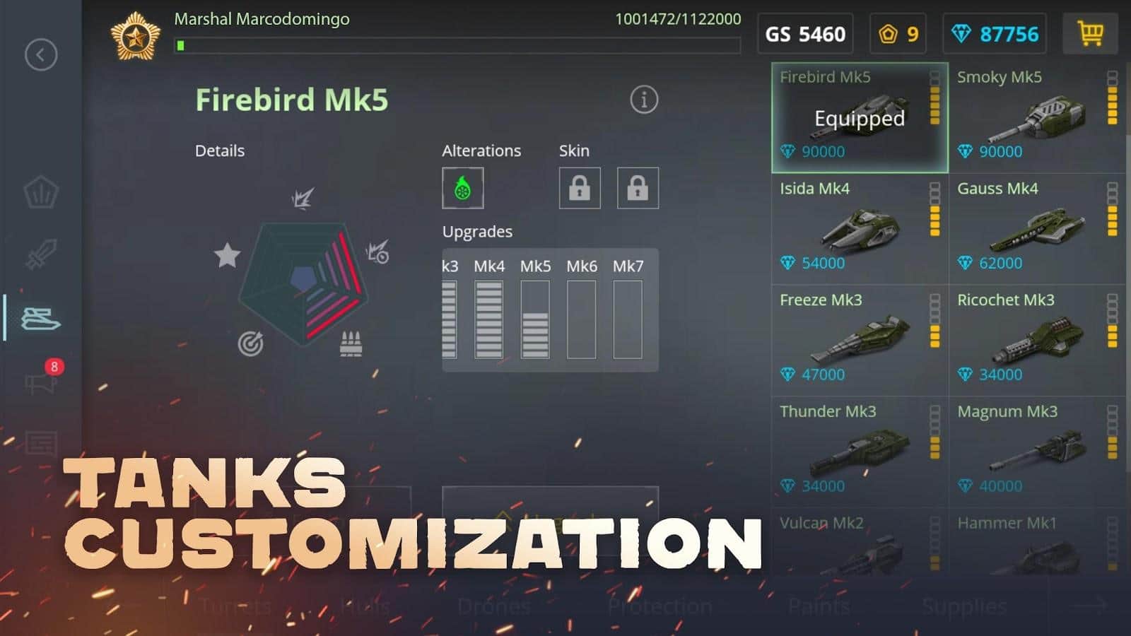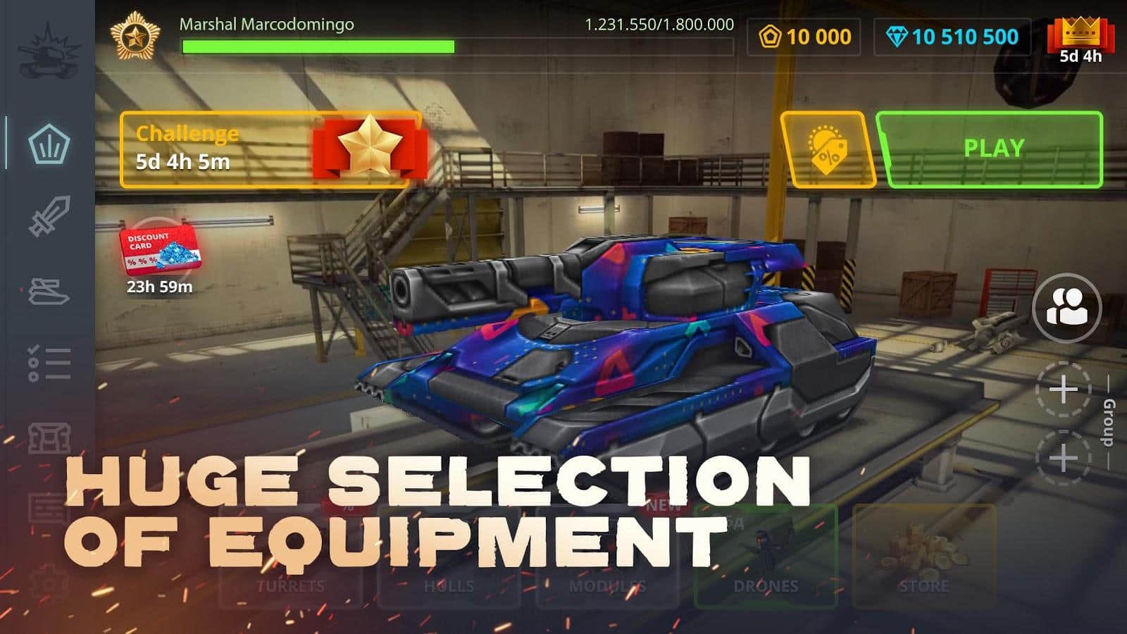 Tanki Online – acción multijugador de tanques – participa en batallas de tanques que tendrán lugar en diferentes mapas. Destruye a tus enemigos en batallas PVP con amigos o solo y derrota a todos los enemigos. Utiliza diversas armas y armaduras enemigas, así como pide ayuda a drones y potenciadores que te harán más efectivo contra los oponentes. En este juego, jugarás en equipos de 8 contra 8 o participarás en una sola compañía. Mejora y actualiza tu tanque a medida que avanza el juego, añadiendo diversas carrocerías, cañones y armaduras. Supera más de 30 niveles y colecciona cartas.