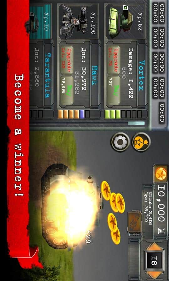 Tanks Clicker - el juego puede pasar tu tiempo. El juego es dolorosamente simple, pensar, esforzar el cerebro, y aún más, no es necesario estar más borracho después de un duro día. Solo toma tu teléfono y haz clic, todo es fácil y simple, pero el juego aún te atrapa. Destruye todos los tanques, para hacer esto, aprovecha la ayuda de las torretas. En la primera oportunidad, mejora las armas para derrotar más fácilmente al objetivo.