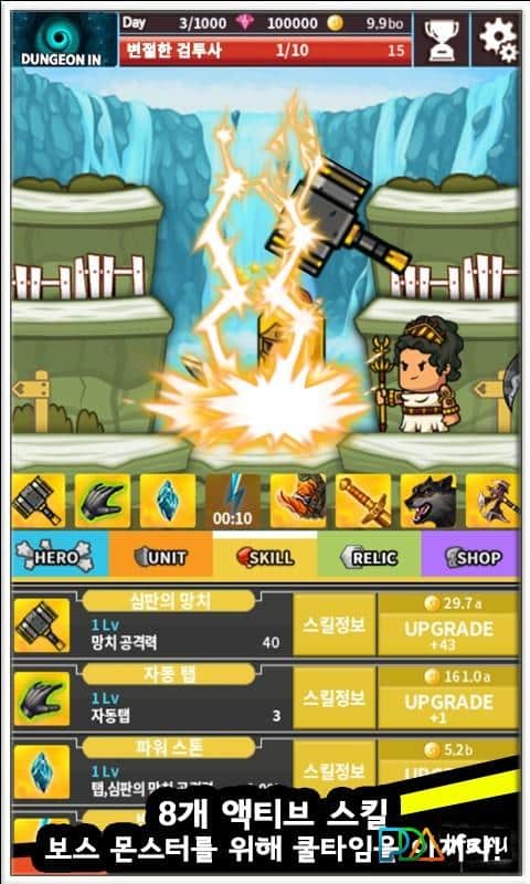 Tap Boss – clicker en Android, donde tienes que destruir monstruos y otros enemigos. Fuerzas oscuras y monstruos salen de la puerta del infierno y tratan de destruir el mundo creando tu plan. Tu tarea principal será hacer clic tan a menudo como sea posible en la pantalla de tu teléfono y destruir a todo el mal que ha llegado a nuestro mundo. Recluta la ayuda de mercenarios, que pueden atacar a los enemigos y también usar artefactos antiguos y amuletos para mantener su poder. Compra tanto oro y piedras preciosas que te harán aún más fuerte. Lucha contra el mal y no les permitas llevar a cabo sus malvados planes.