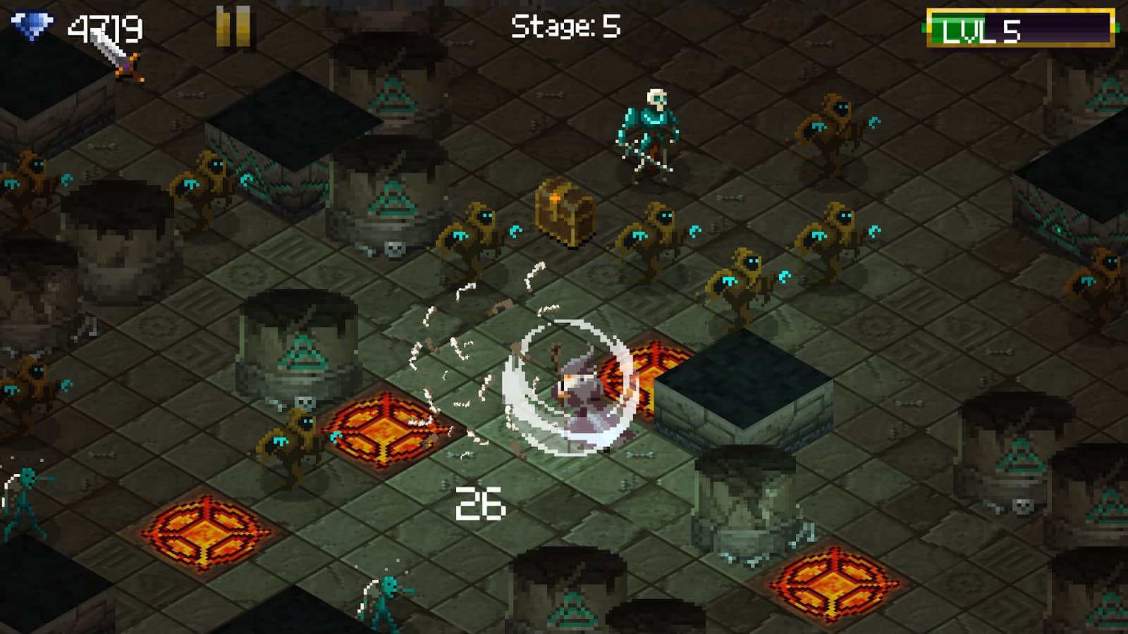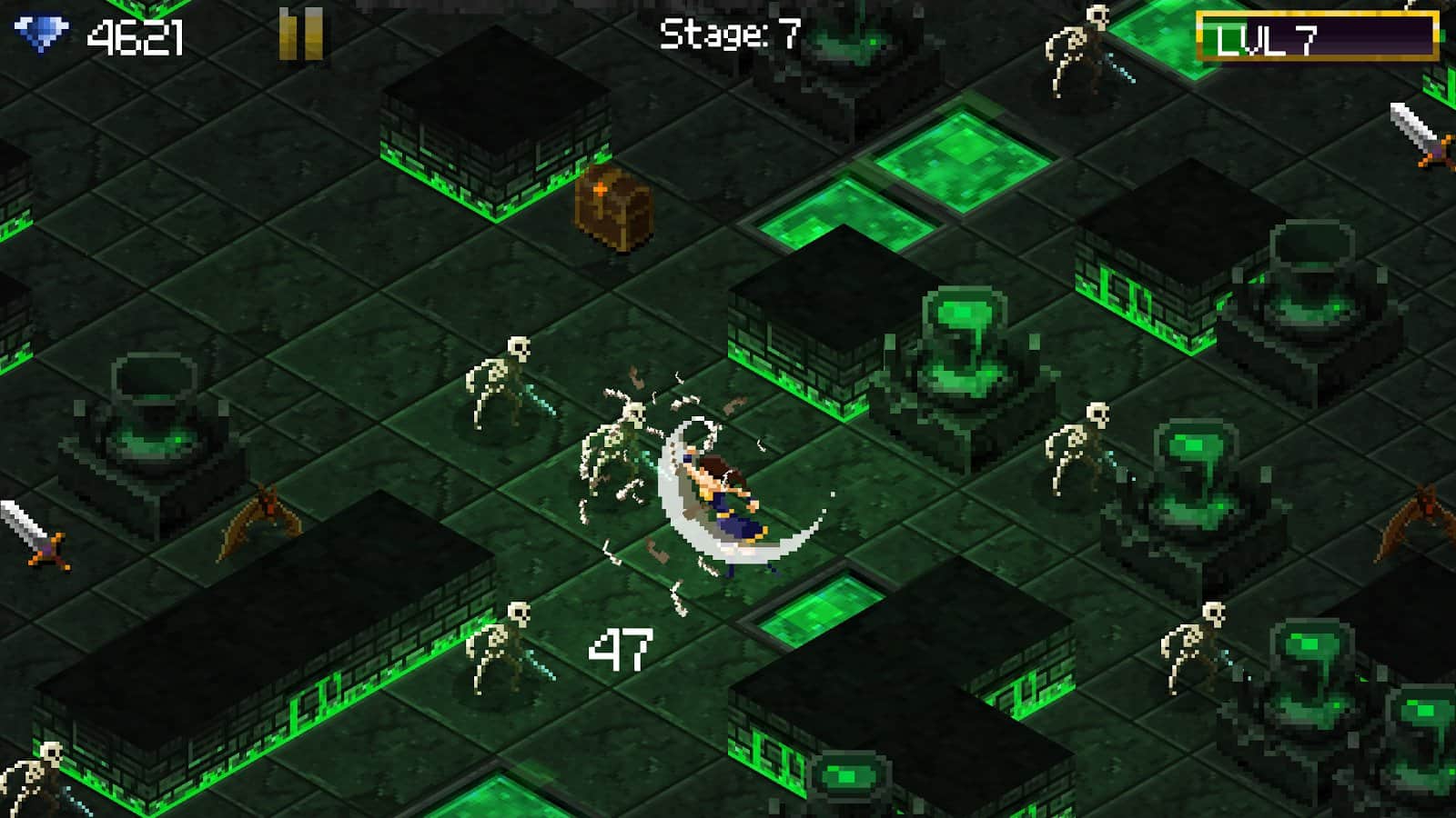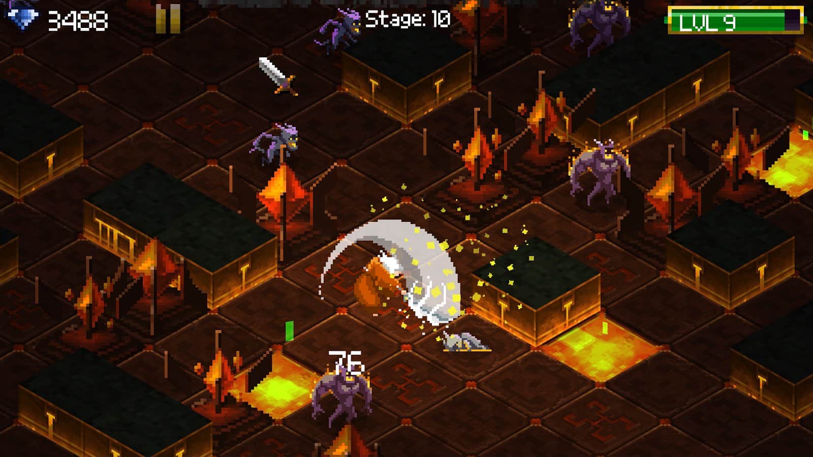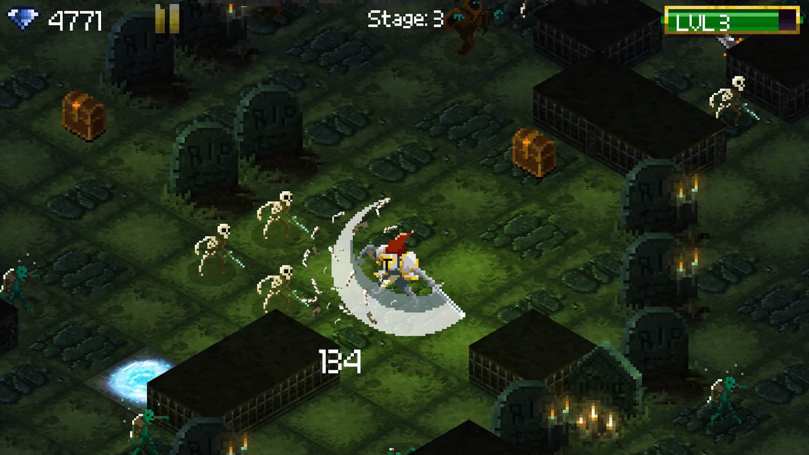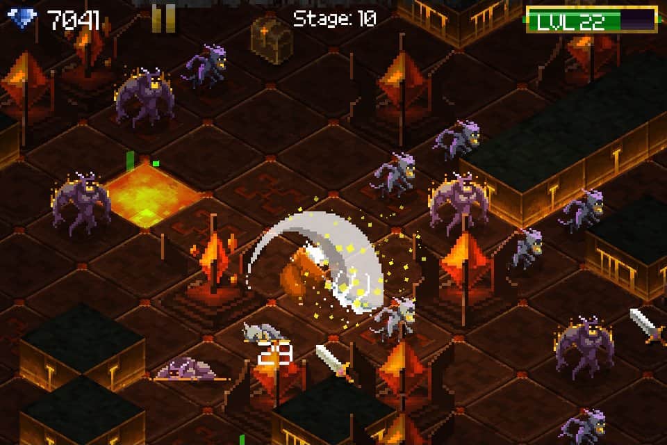 Tap 'n' Slash - un loco shooter en estilo pixel que se lanzó originalmente en la plataforma iOS y que es la continuación lógica de la versión para dispositivos Android. Vale la pena señalar que el juego ha ganado una no pequeña popularidad entre los fanáticos de los juegos de arcade simples con una jugabilidad dinámica y ahora entenderás por qué. debes jugar como un bárbaro armado con una espada de tamaño considerable, y tu tarea es solo enviar a un héroe al lugar correcto, todo lo demás, a saber, la destrucción de hordas de enemigos, lo hará él mismo. Debe recordarse que todas las mazmorras se generan aleatoriamente, y con cada nivel los monstruos se vuelven más grandes y el poder aumenta. Otro factor que complica las cosas es el hecho de que tus armas eventualmente se desgastarán y perderán sus propiedades, por lo que necesitas recolectar constantemente varios objetos para reparar y mejorar.