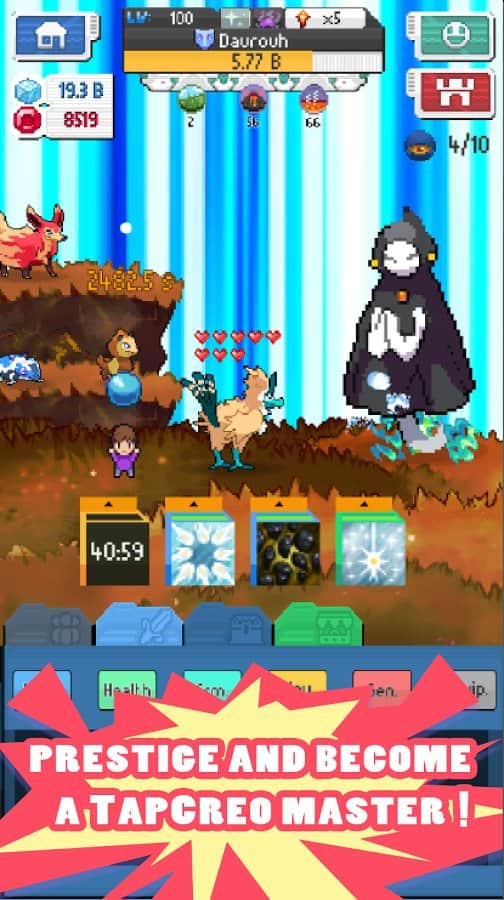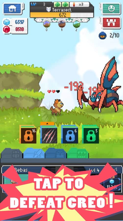 EvoCreo - juego de rol que apareció no hace mucho tiempo, pero que ya ha adquirido un envidiable ejército de fans y esto es comprensible, porque el vasto mundo del juego y los personajes originales combinados con los atributos de los clásicos juegos de rol pueden conquistar a cualquier fan del género. TapCreo - nuevos personajes de los creadores de EvoCreo, que se asemeja a su antecesor y es una continuación. A pesar de que TapCreo es un juego completamente independiente con su propia jugabilidad y personajes, sin embargo, podrás transferir personajes ya desarrollados de la primera parte a TapCreo. La secuela en su mayor parte copia el componente visual de EvoCreo, por lo que los fans de la primera parte encontrarán mucho que les resulta familiar.