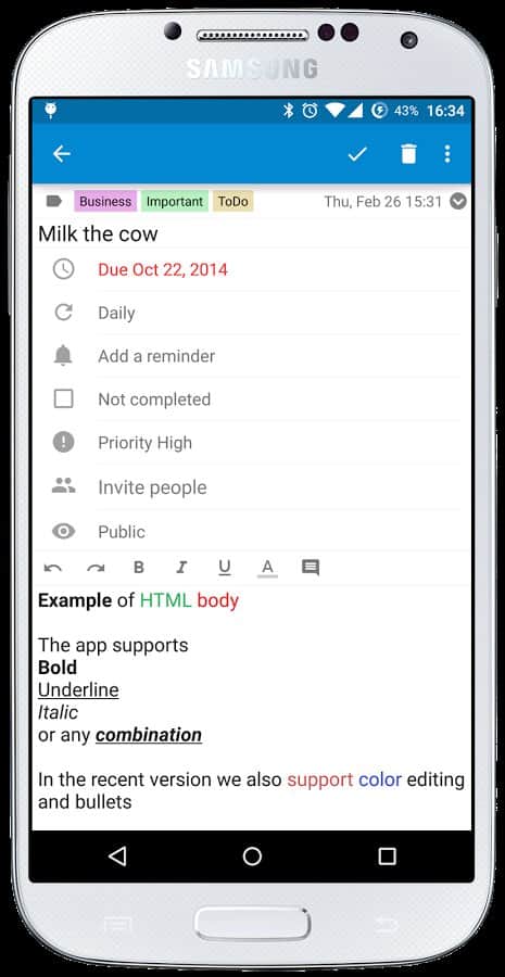 Comentarios a Tasks & Notes for MS Exchange en Android