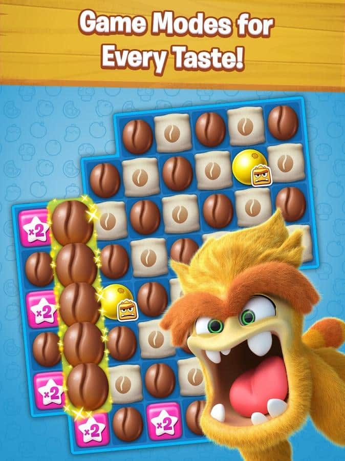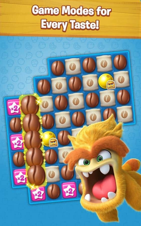 Taste Buds – un emocionante juego para Android del género de tres en raya. En el juego, tu tarea será hacer tres o más objetos diferentes en una fila y no permitir que el villano insidioso conquiste el mundo. Ayuda a seis monstruos divertidos que son responsables del sabor de la comida a no dejar que los enemigos la capturen. Los villanos quieren privar al mundo entero de sabores y dejar solo comida insípida y sin sabor, no dejes que lo hagan. Viaja por el colorido mundo del juego y combina dulces, chocolates y otros objetos y reabastece el mundo de diferentes sabores. Usa varios bonos y potenciadores más rápido y pasa niveles difíciles. Te esperan más de 180 niveles en 6 modos únicos y seis personajes divertidos.