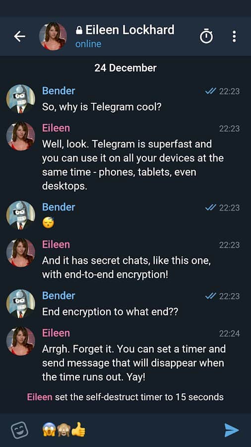 Versión Express del mensajero original Telegram, que se basa en TDLib (Biblioteca de Base de Datos de Telegram). La aplicación es básicamente idéntica a la original Telegram. Podrás actualizar fácilmente a la nueva versión sin perder contactos e incluso el historial de las conversaciones. En la aplicación hay “funciones experimentales”, varias opciones de temas nocturnos y una serie de opciones adicionales. Por ejemplo, puedes elegir cómo mostrar el chat en forma de “burbujas” o texto continuo en todo el ancho de la ventana. Además, esta aplicación está significativamente optimizada en comparación con el Telegram estándar.