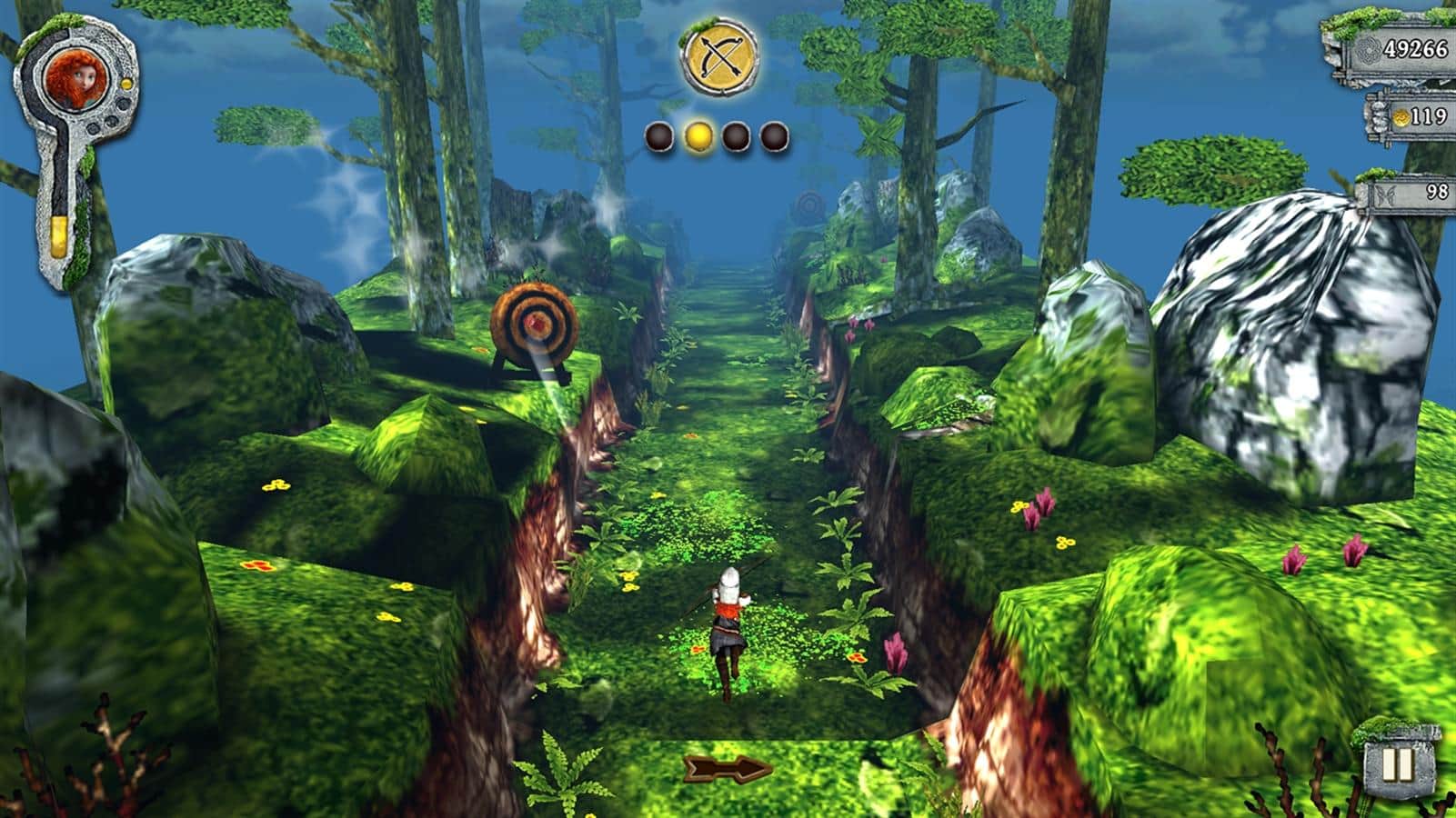 Temple Run: Brave es un excelente y ampliamente conocido juego de correr para Windows Phone. Tu tarea es simple a primera vista: correr, recoger monedas, disparar flechas y evitar la persecución en forma de un temible oso. Sin embargo, la jugabilidad en sí, así como las trampas y peligros que encuentras en el camino, obligan a mirar este juego de manera diferente. El juego está basado en la película de Disney "Valiente", aunque no se basa absolutamente en ella. En el juego podrás mejorar al personaje principal - la valiente Merida y mejorar sus habilidades.