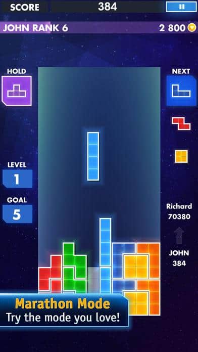 TETRIS es difícil de describir porque probablemente todos lo han jugado en absolutamente cualquier dispositivo, ya sea Tetris, una consola, una PC y muchos otros dispositivos en los que el juego ha salido. En iOS también es bastante común, aunque está hecho de manera bastante cualitativa, tiene gráficos bonitos y colores ricos. Pero en general, todo es como de costumbre, obtienes figuras donde quieres, construyes una línea y obtienes puntos por ello. También hay una tabla de clasificación para todos los jugadores.