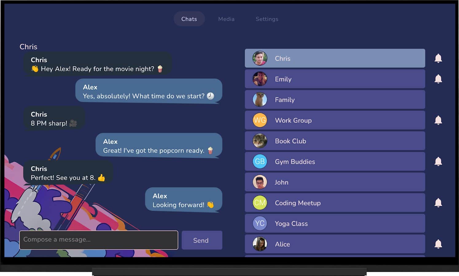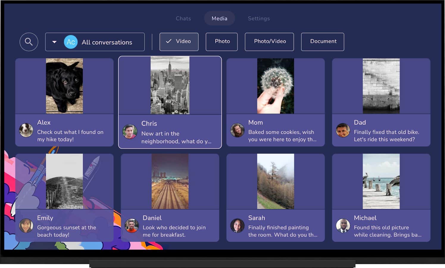 Tevegram es un cliente individual no oficial de Telegram, diseñado especialmente para su uso en Android TV. Ofrece la capacidad de ver películas, comunicarse con amigos, familiares y colegas directamente en la televisión. Puedes disfrutar de películas, música o ver contenido durante las conversaciones, así como recibir notificaciones en tiempo real.