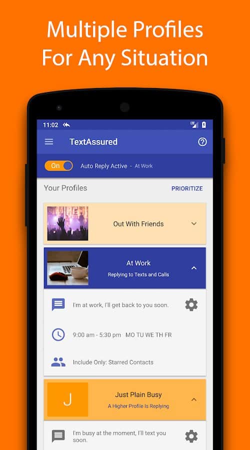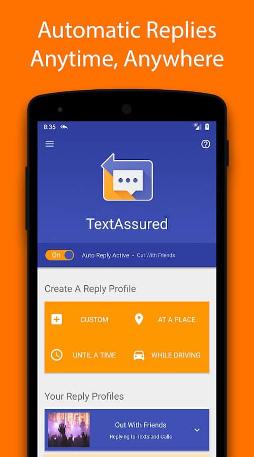 & lt;p & gt; La aplicación TextAssured - Respuesta Automática es útil para aquellos que no quieren perder tiempo aceptando llamadas entrantes de voz y mensajes de texto SMS. Ejecuta el programa y funcionará automáticamente en tu dispositivo.