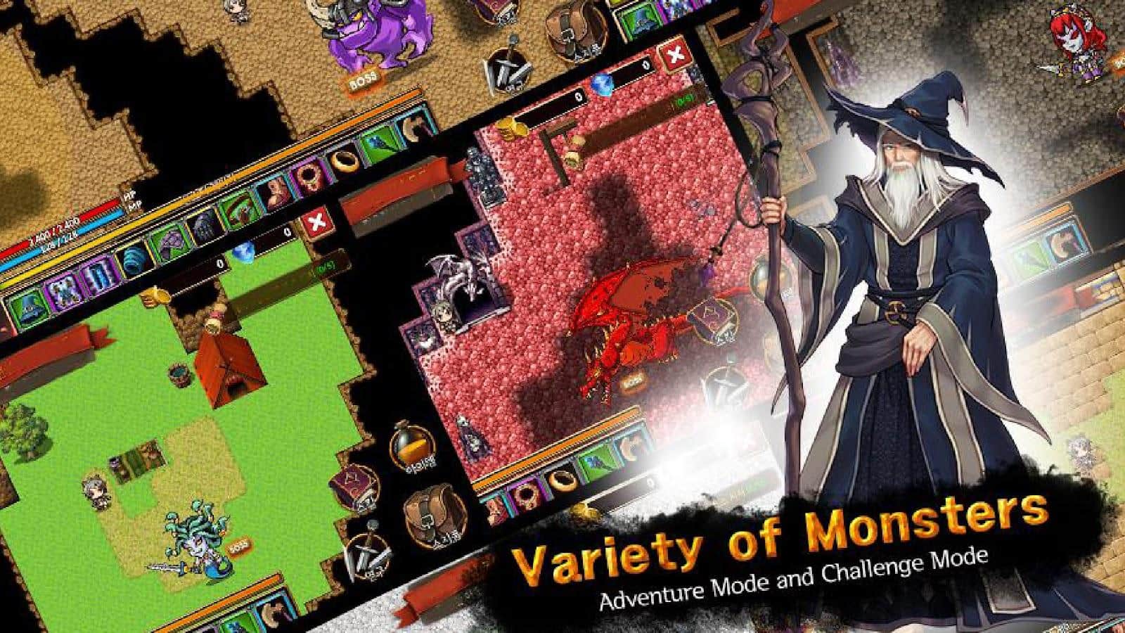 Atmosfera clásica de RPG retro: un mundo pixelado lleno de monstruos, rompecabezas y batallas épicas.