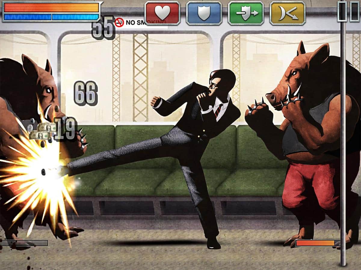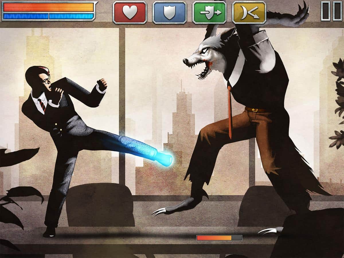 El Ejecutivo – un juego en el que controlas a un trabajador de oficina, que tiene la fuerza para lidiar con numerosos enemigos. En este juego te encontrarás en una oficina donde todos los empleados se han convertido en lobos. Muévete por los pasillos y habitaciones y lucha contra los enemigos, utilizando los numerosos golpes y técnicas de combate. Destruye una pared frente a ti, patea la puerta y entra a luchar con poderosos jefes. Tu personaje tendrá artes marciales, lo que le permitirá superar a todos los enemigos. A medida que progreses en el juego, tus enemigos se convertirán de lobos en búfalos, hombres lobo, cerdos e incluso gelatina. Pasa por más de 120 niveles, lucha contra 50 enemigos y derrota a más de 12 jefes.