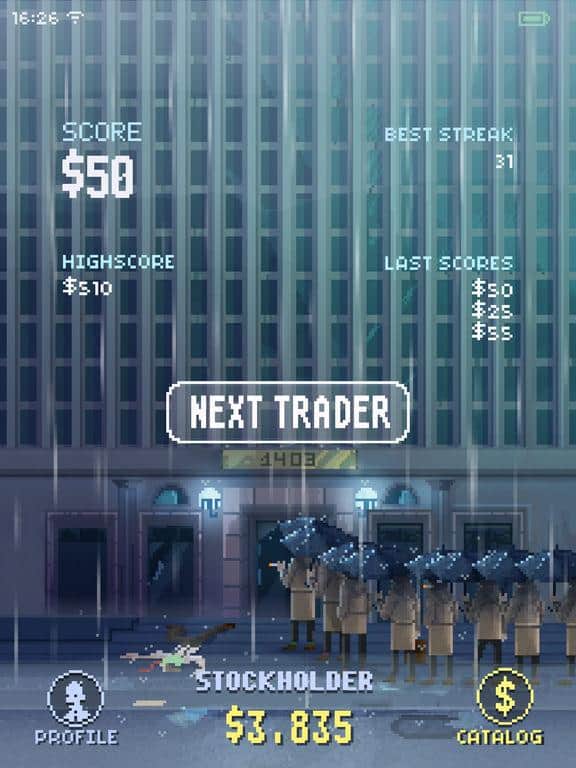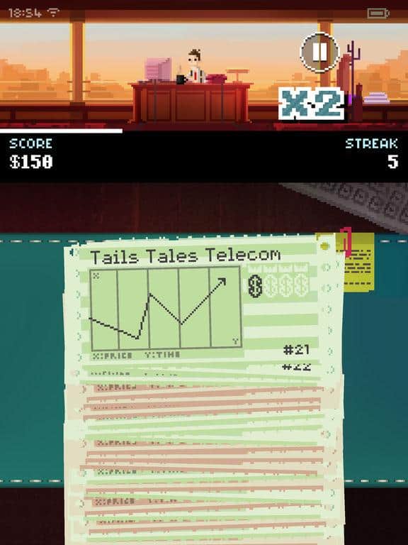 La Firma – el simulador para IOS donde juegas el papel de un corredor de bolsa. En este juego controlarás a un héroe que necesita comprar o vender acciones en un cierto orden. Si la acción sube, véndela, y si baja, entonces compra en grandes cantidades. De tus acciones dependerá el futuro de la empresa, y si todo va mal, entonces podrías ser despedido. Desarrolla una estrategia para la venta y compra de acciones y recurre a la ayuda de financieros. Conviértete en el mejor corredor de este juego y no acumules muchas acciones, de lo contrario llenarán toda la pantalla.