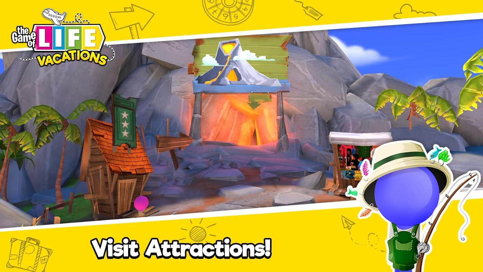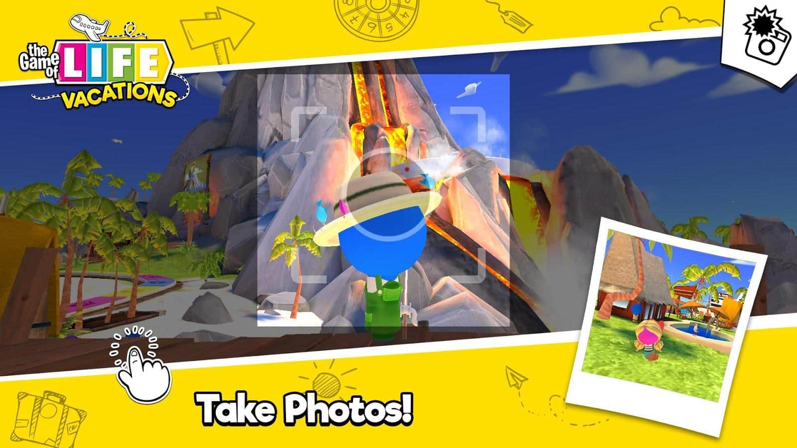 EL JUEGO DE LA VIDA Vacaciones es un juego divertido donde recolectas sus pertenencias y con su familia irás de vacaciones. Viaja a los lugares misteriosos y fascinantes de nuestro planeta y asegúrate de visitar la isla de los Volcanes donde explorarás flujos de lava ardiente, construirás esculturas de arena, harás esnórquel y competirás con familiares y amigos. Tu tarea principal al pasar el resto será tomar fotos impresionantes y coleccionar Souvenirs únicos llenando tu álbum. Cuantos más recuerdos traigas de casa, más oportunidades tendrás de ir nuevamente.
