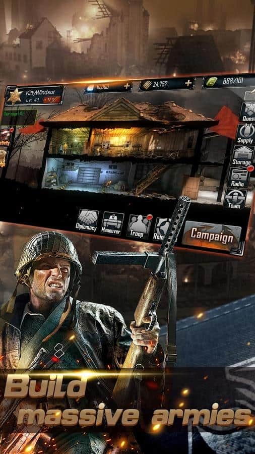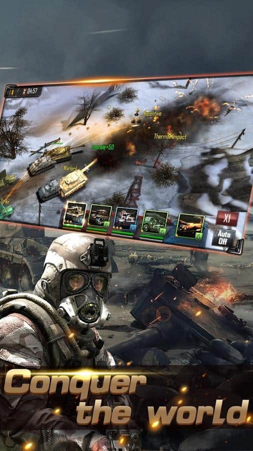 La Gran Guerra: Conflicto Total – el juego en Android, donde aceptas tu parte en la guerra mundial donde luchas por nuevo territorio. En este juego jugarás el papel de comandante en jefe del enorme estado y lucharás contra enemigos por la dominación mundial. Construye una enorme base y defiéndela de los ataques de los enemigos. Reúne un gran ejército, manda tus tropas y equipo militar y llévalos a los campos de batalla. Con un solo toque de dedo, envía tropas a la batalla y derrota a tus oponentes para recoger trofeos y bonificaciones después de la batalla. Mejora tu base y financia nuevas tropas para tu ejército. Únete a alianzas y crea la tuya propia con tus amigos.