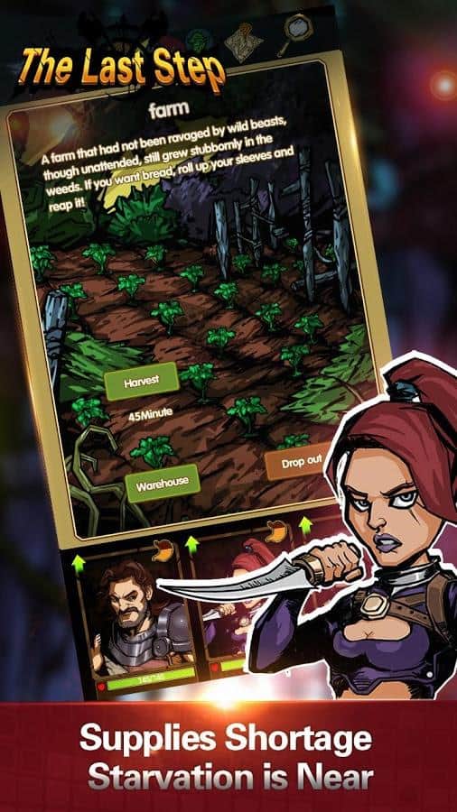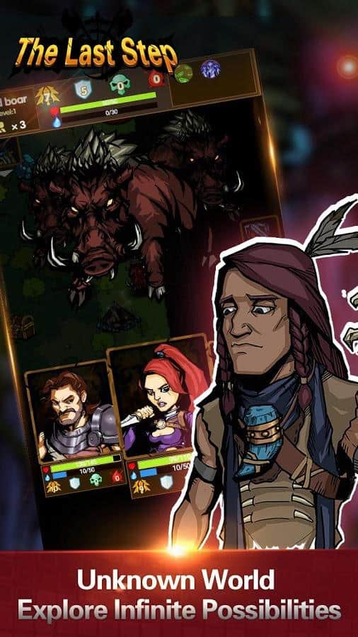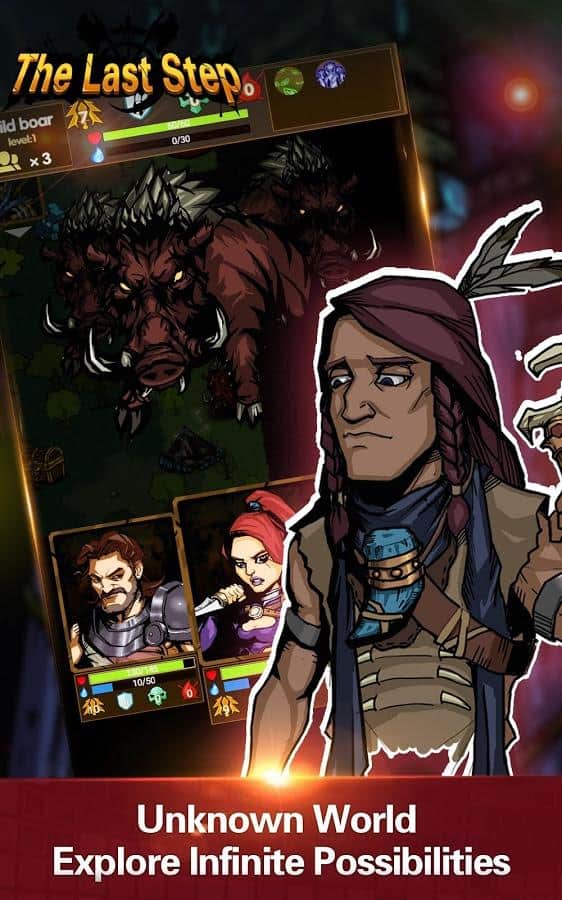 El Último Paso – RPG para Android, donde explorarás el sombrío mundo postapocalíptico. Toma el control de valientes héroes y guíalos hacia adelante en un mundo lleno de peligros y monstruos aterradores. Camina a través de la jungla, peligrosas mazmorras y pantanos y únete a la batalla contra monstruos y demonios. Durante el juego, descubre nuevos personajes que tendrán habilidades únicas. Crea un equipo donde cada personaje complemente y refuerce al otro. Únete a la batalla y, después de una batalla exitosa, recoge valiosos artefactos y armas. También en este juego, tus héroes se enfrentarán a enfermedades y estrés, que te esperarán en cada paso.