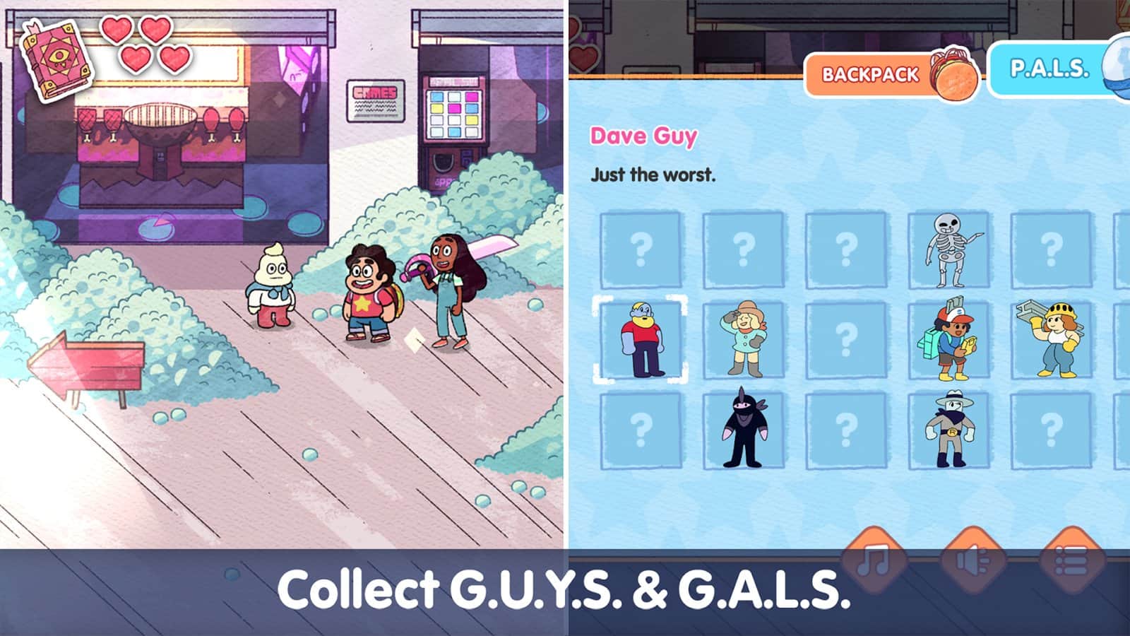 El Cuento Fantasma – un emocionante juego donde ayudarás a Steven y Connie a salvar las gemas de los peligrosos y antiguos libros. Embárcate en un fascinante viaje a través de mundos coloridos y salva a granate, amatista y perla para que se unan a tu equipo. Cada una de las gemas tiene sus propias técnicas únicas que te ayudarán a derrotar a los enemigos y resolver acertijos desafiantes. Lucha contra los enemigos en tiempo real a través de gestos, dibujando en la pantalla de tu teléfono o tableta diversos personajes. Derrota a las gemas enemigas encerradas en burbujas. Ayuda a Lukus a recoger todas las 20 figuras familiares del cartoon.